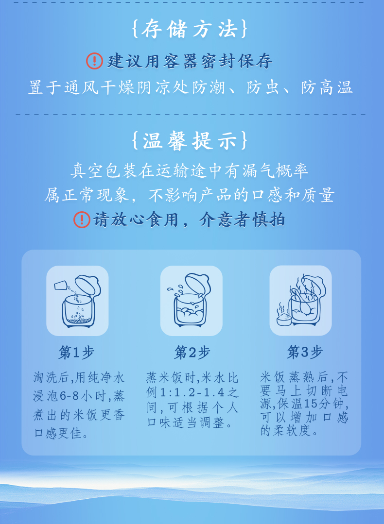 五常大米色泽光亮,醇厚绵长,饭香四溢。做好的大米饭口感极佳,食味清淡略甜,绵软略粘,芳香爽口。饭粒表面油光艳丽,剩饭不回生,是追求生活品质的人们米饭的首选。适合所有人群,尤其适合肾脏和肠胃比较娇弱的老人孩子长期食用。