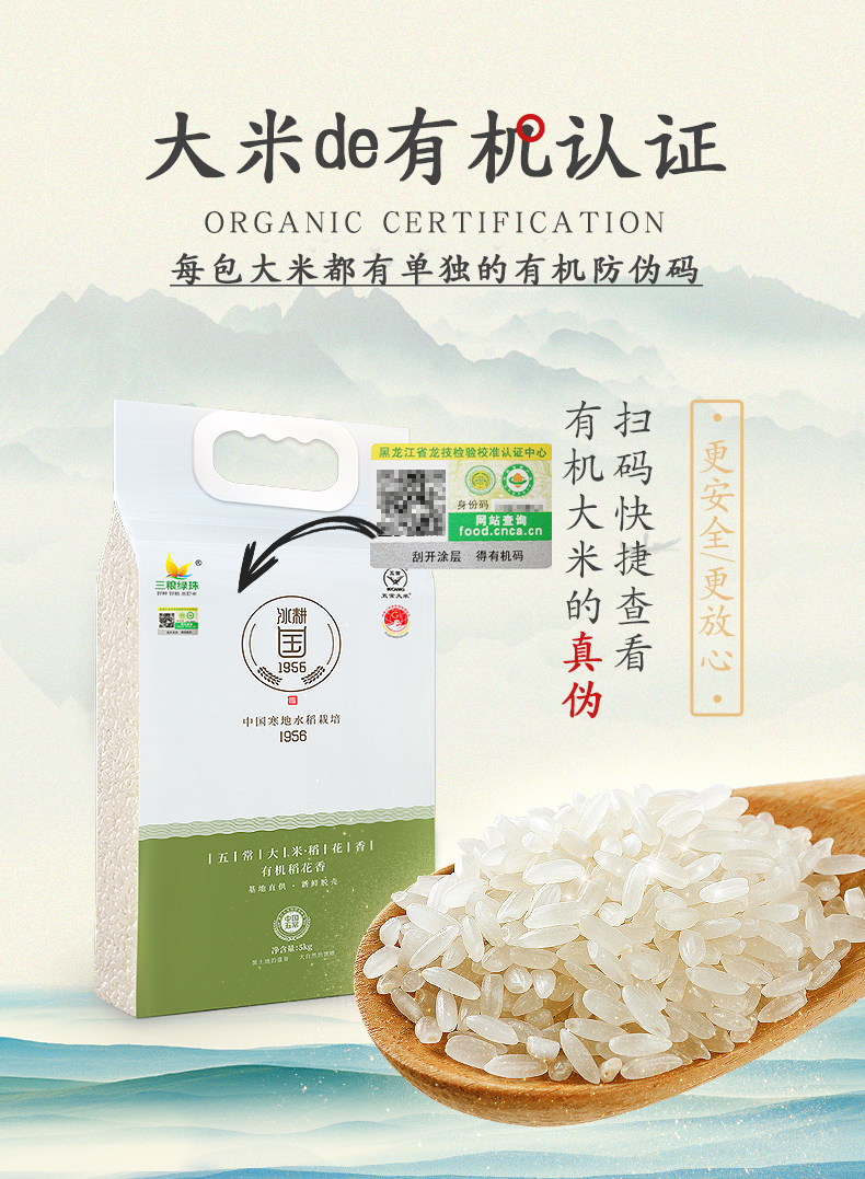 这款大米来自东北拉林河北岸的五常小产区,有机基地种植,一年一季种植,精选绿珠3号稻花种,61年匠心育种,12代科研,食味值高达88分,香味出众,同时还经过中国最严格的有机产品认证,是可以闭着眼睛买的好大米。