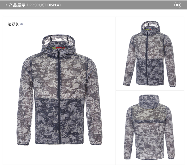 这款皮肤风衣使用100%超细尼龙面料,强度好,防撕裂,重量轻,防风、抗污,迷彩纹印花,非常帅气,适合男生穿。
