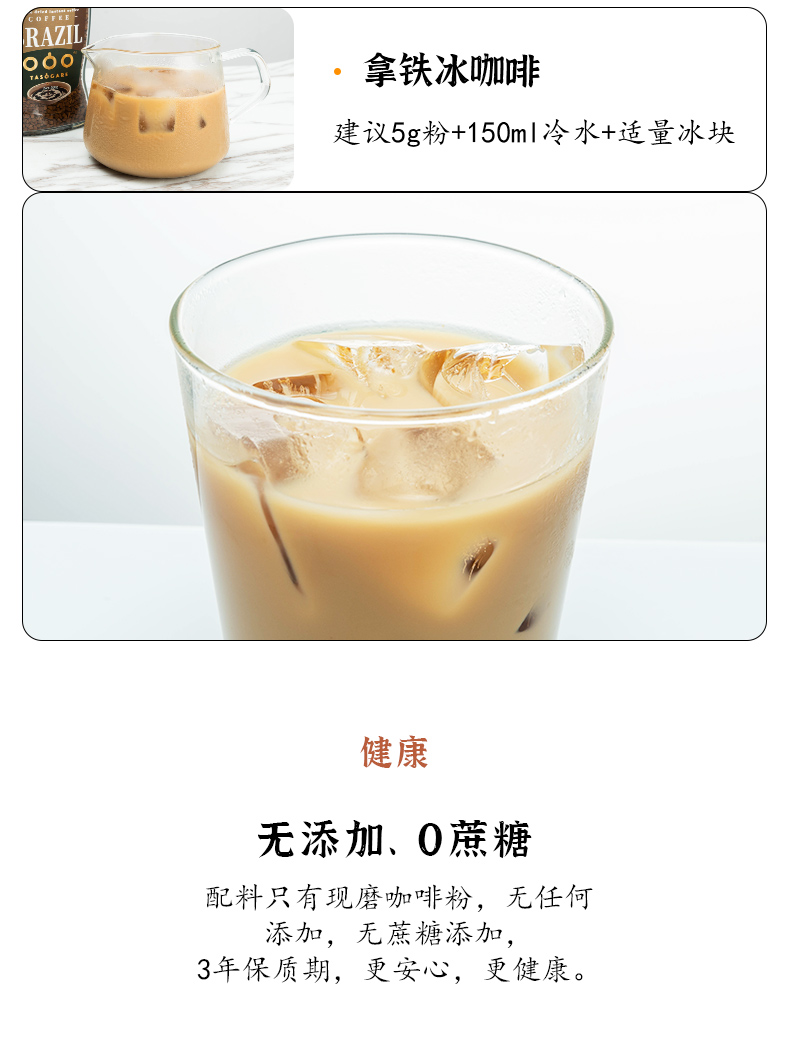 再经过4种微研磨刻度混合技巧使用蒸汽和压力进行双重萃取模式,更接近现磨的口感。配料只有现磨咖啡粉,无任何添加,无蔗糖添加,3年保质期。