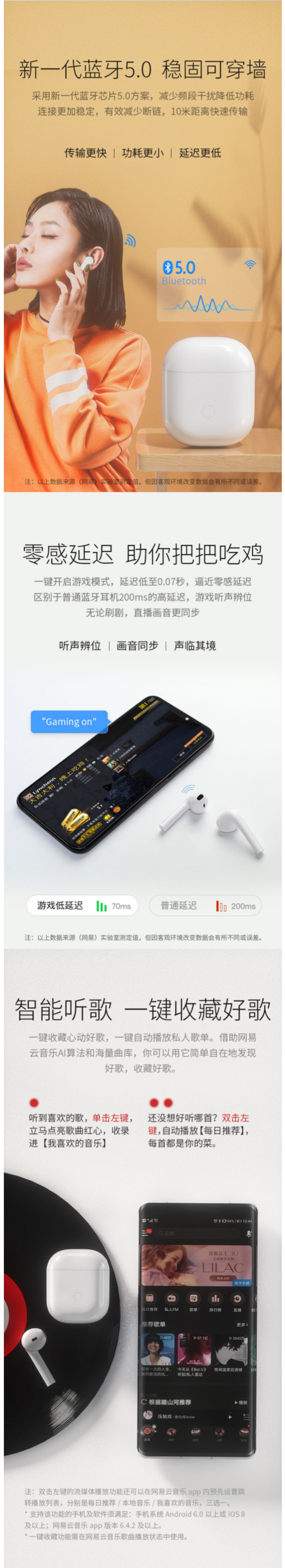 ME08真无线蓝牙耳机,深度融合网易云APP,单击左键即可收藏,双击左键即可自动播放“每日推荐”频道。