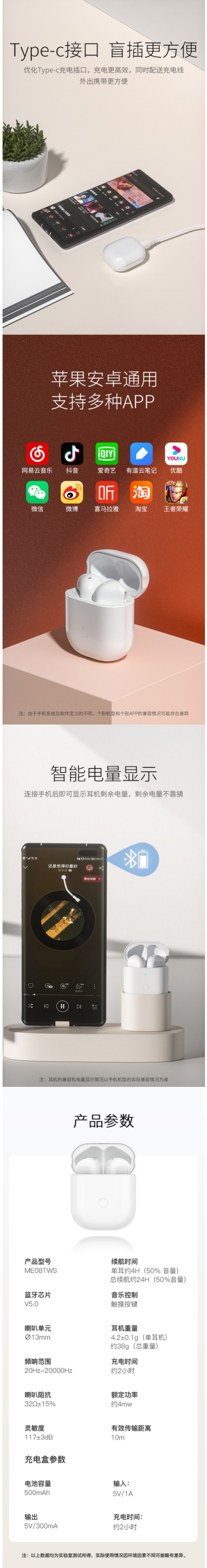 这款网易云音乐 ME08 无线蓝牙耳机,使用蓝牙5.0芯片,连接快速、稳定。使用13mm动圈单元+高分子复合振膜的组合,音质纯净无杂音、低音清晰有力。