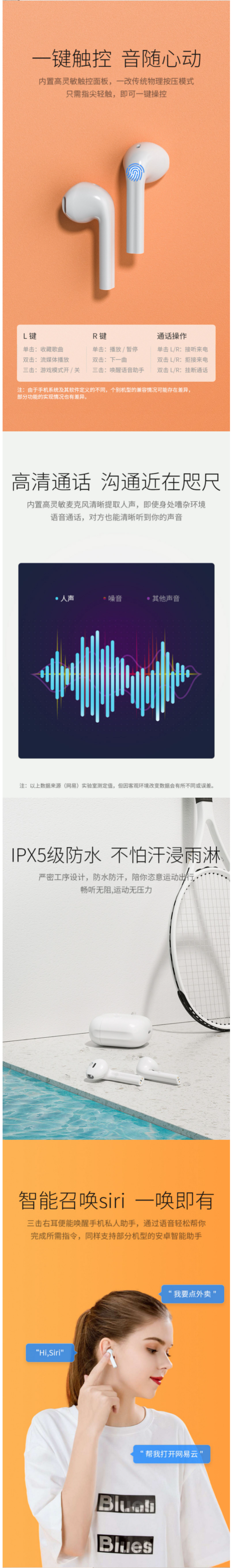 耳机+充电仓总重量不到40g、外形小巧便携。双耳机不分主副,可在双耳/单耳模式之间轻松切换。首次连接后,下次开盖即刻自动回连,拿起就能听。