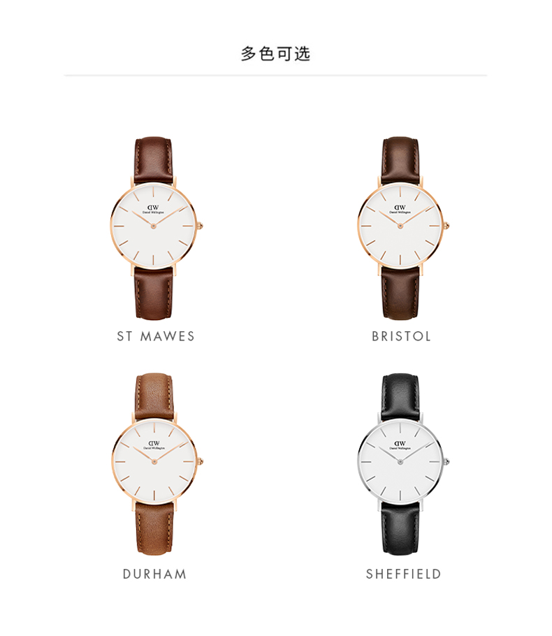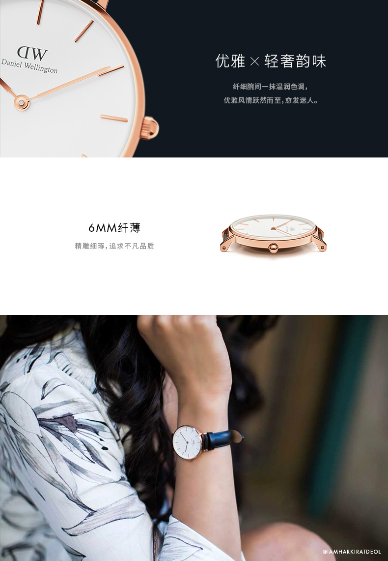 Daniel Wellington丹尼尔惠灵顿(以下简称“DW”)的腕表,似乎已火遍中国。DW是2011年在瑞典成立的手表品牌,品牌取自一位英国绅士的名字。DW充满学院风元素,玫瑰金与银色搭配干净的表盘,轻薄的表身,与苹果风格相似,也符合当下的审美。
