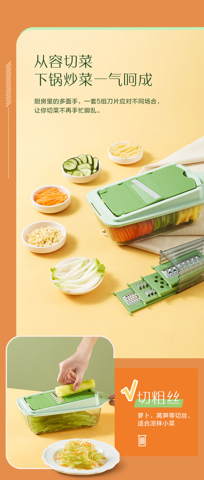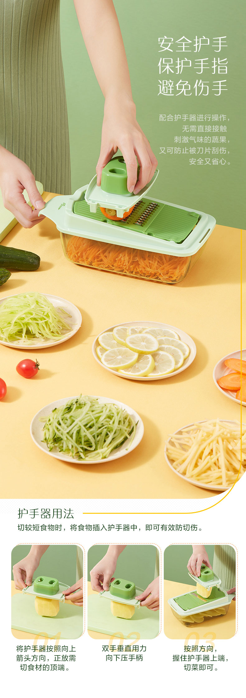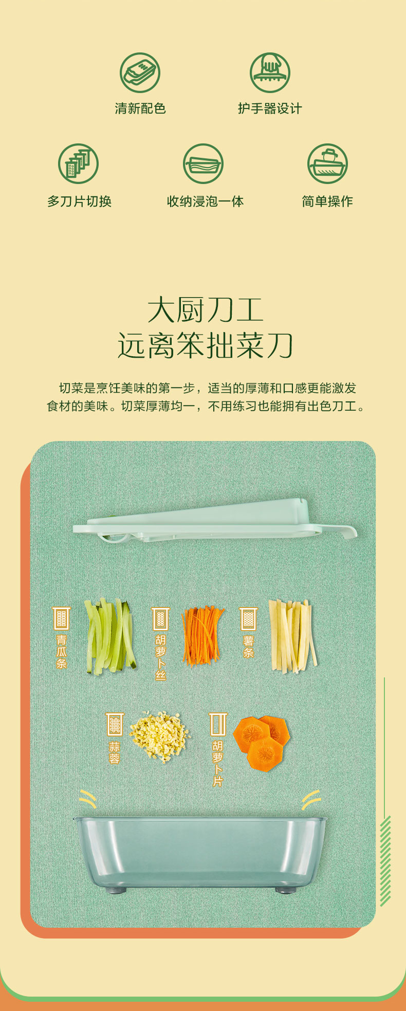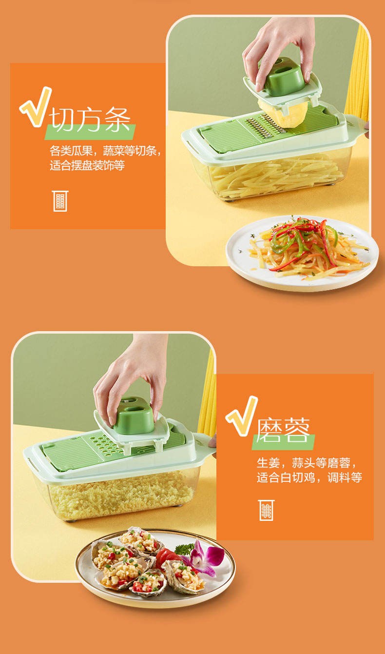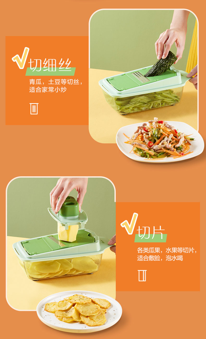 多功能切菜神器,6大功能/花样切丝不伤手,多刀片切换,收纳浸泡一体,多种花型任意切换,方便快捷,智慧女人的选择!不用十年刀工也能切出大厨水平领券链接点此