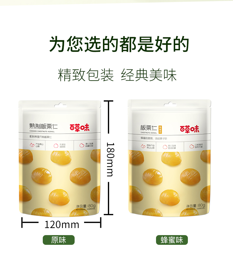 天猫百草味旗舰店17.7元,拍17件可领220元优惠券,17件实付90.9元到手,百草味 蜂蜜板栗仁,精选中国国家地理标志保护产品“燕山板栗”,个大,肉厚,香甜软糯,味道甘美,颗颗精选,无坏果,营养味浓,开袋即食【赠运费险】