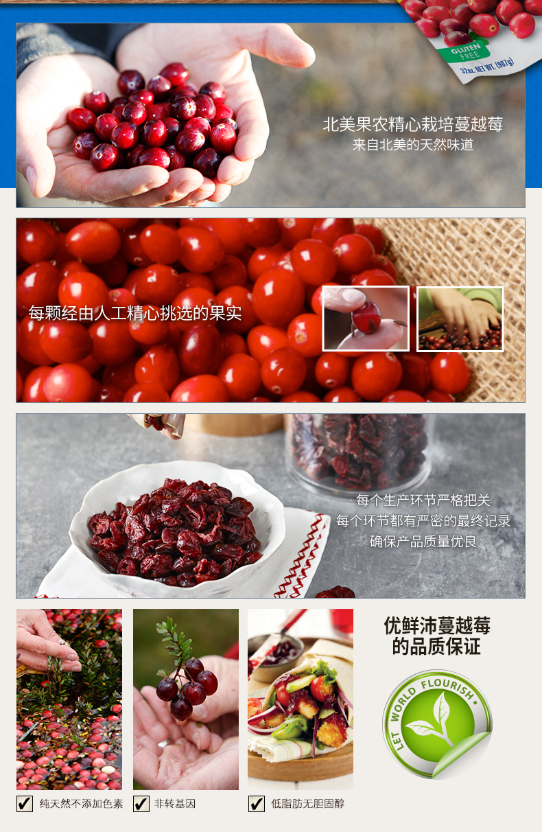 蔓越莓只适合栽种在高酸性沙土中,全球产区不到4万英亩,由于它对于人体健康,尤其女性健康保养有诸多好处,因此“小红莓”有“北美红宝石”之称。除了富含维生素C之外,还有许多营原元素,还有其他水果罕有的初花青素(PACs) ,既可以直接吃,也可以用来做烘焙、甜点等,老少皆宜。