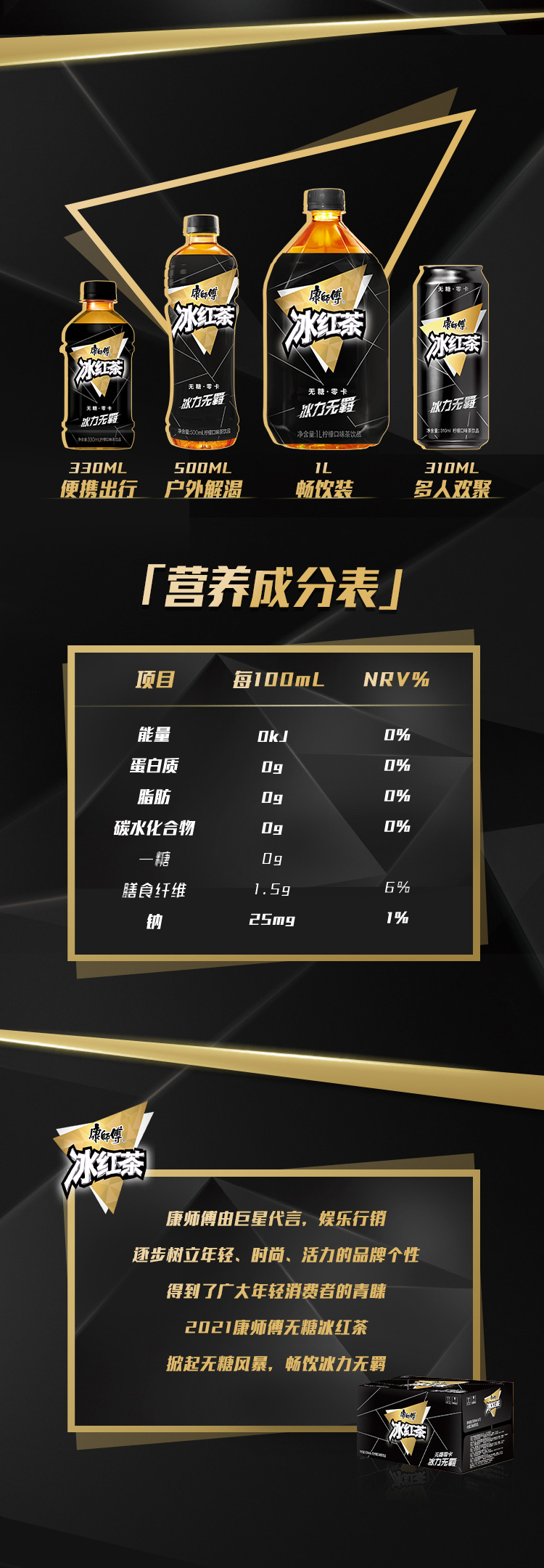 康师傅无糖零卡冰红茶,以红茶为主要原料,搭配清新的柠檬,赤藓糖醇的新代糖制作,而且还添加了膳食纤维,饮用更加健康。
