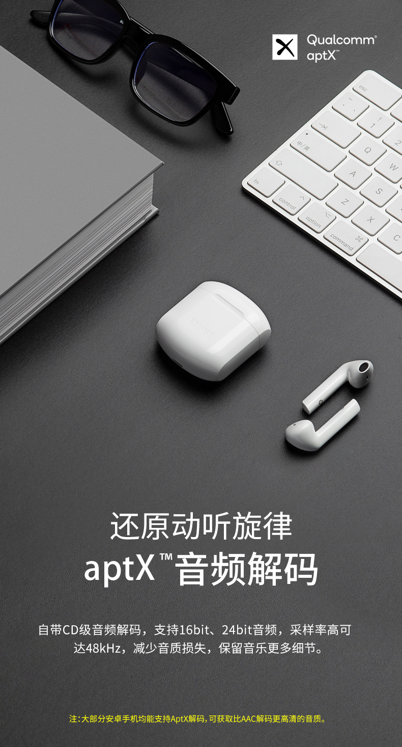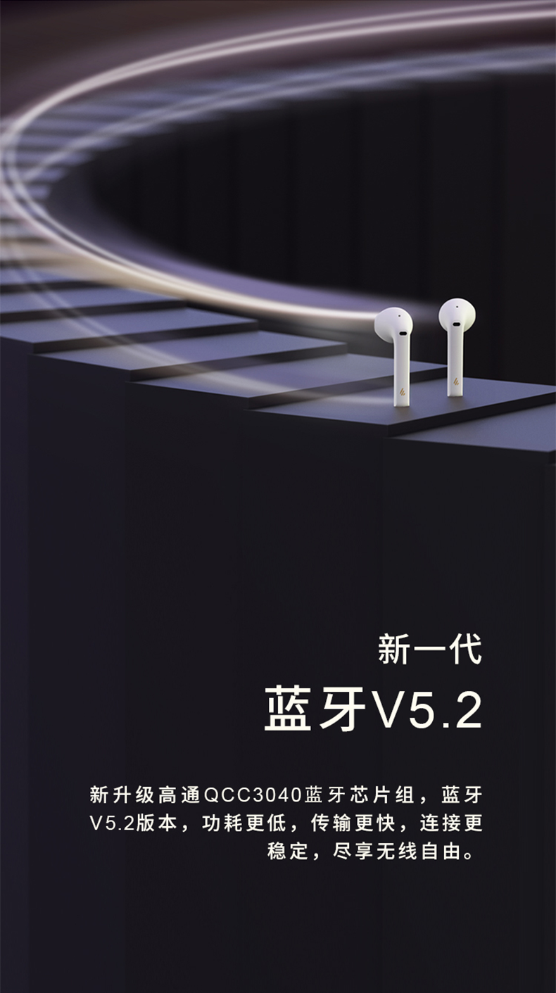 这款漫步者Lollipods是今年刚发布的,使用高通QCC3020芯片,通过蓝牙5.0连接,支持aptX无损解码,音质更强,延迟更低,使用更加省心,13mm大动圈,三频均衡,音质澎湃。