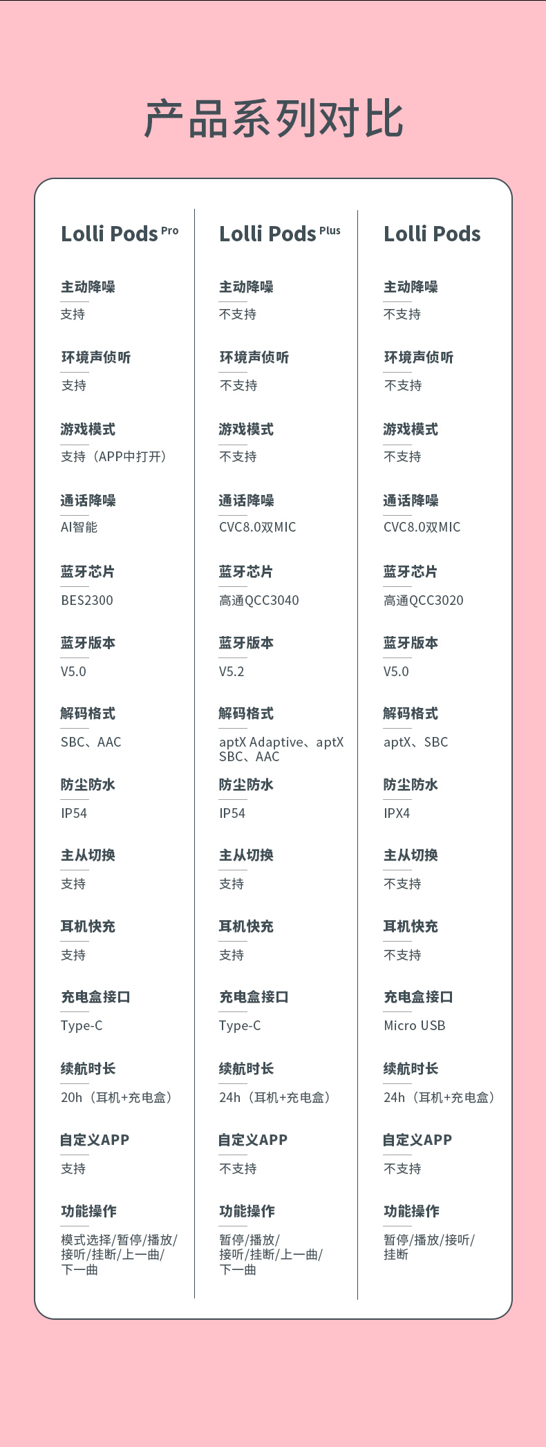漫步者Lollipods是我比较推荐的一款200元级别的TWS蓝牙耳机,最大的优势是用了高通的QCC3020芯片,单片芯片的价格在60元左右,低能耗,高稳定性,支持蓝牙5.0和aptX解码,而且半入耳式,久带耳朵不疼。