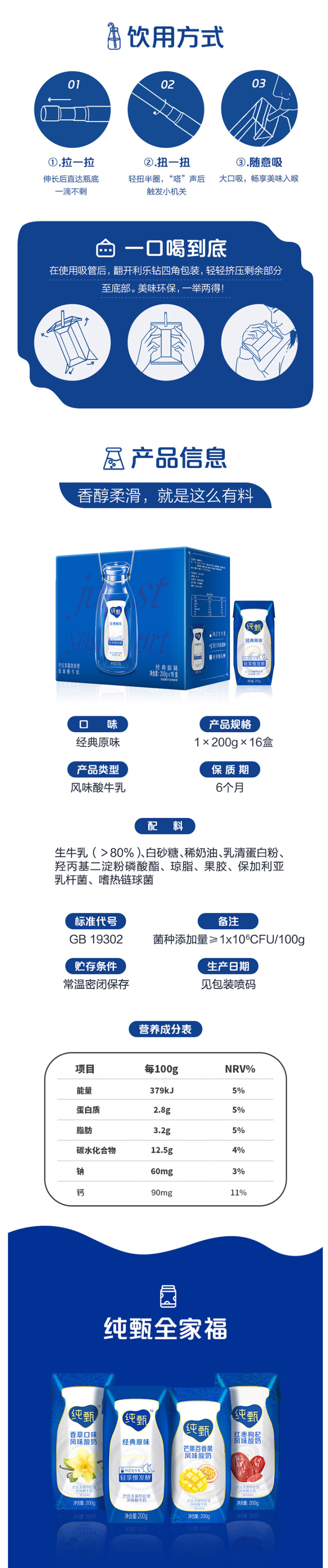 这款蒙牛 纯甄 常温酸奶,精选上等奶源,口感纯正,原汁原味,不添加香精、防腐剂、色素,天然美味,营养健康。