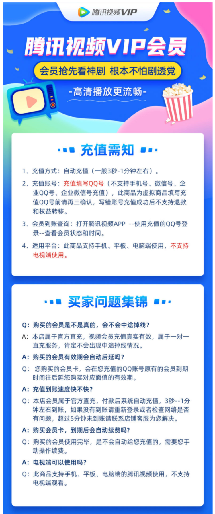 腾讯视频VIP(正价199/年):支持手机、平板、电脑腾讯视频超级影视VIP(正价488元/年):支持手机、平板、电脑、电视TV