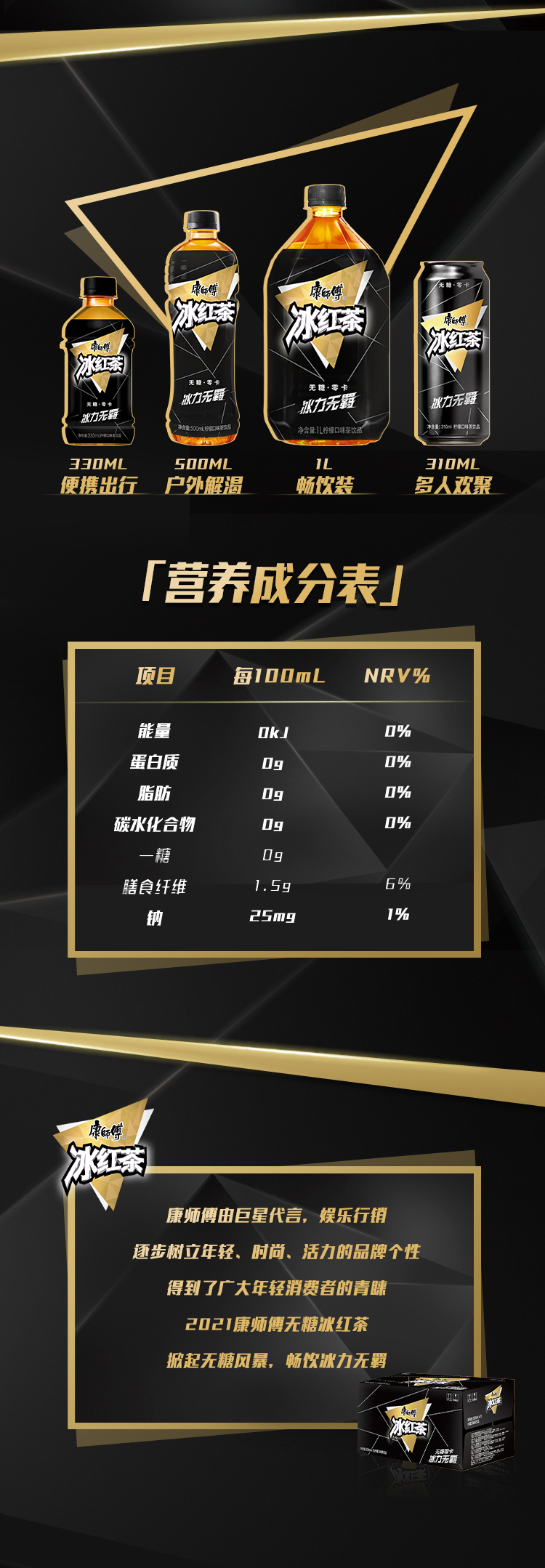 康师傅无糖零卡冰红茶,以红茶为主要原料,搭配清新的柠檬,赤藓糖醇的新代糖制作,而且还添加了膳食纤维,饮用更加健康。