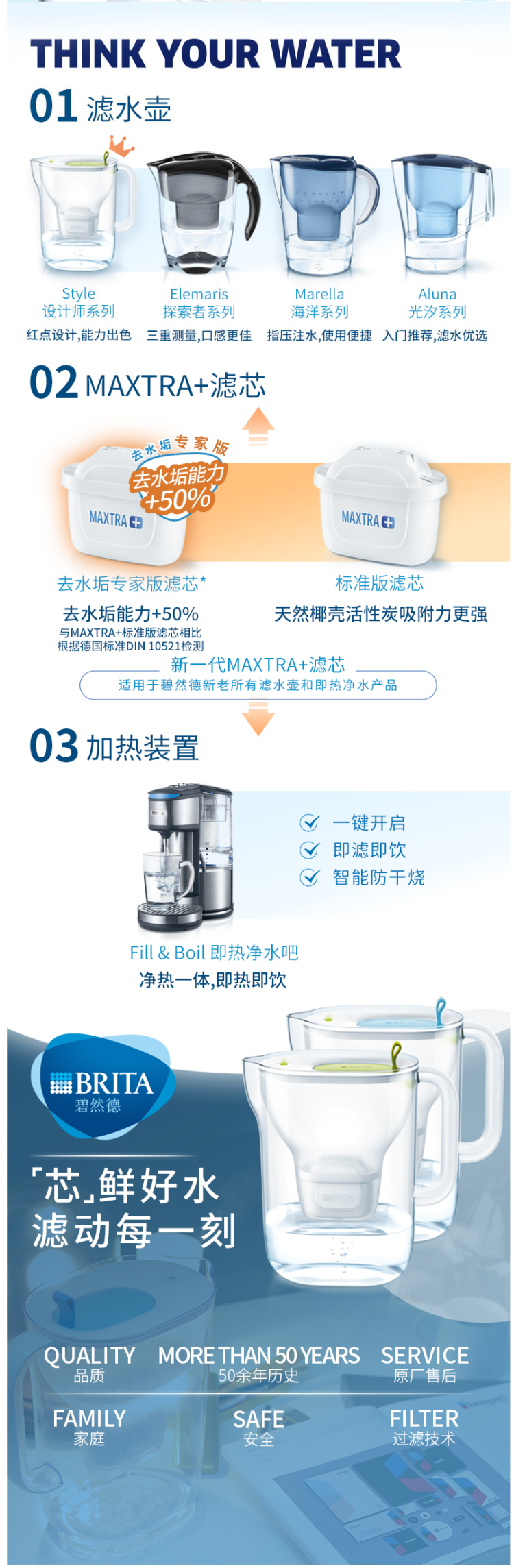 这款碧然德 第三代 MAXTRA+ 去水垢专家版滤芯,是专门针对中国水质研发设计,与MAXTRA+标准滤芯相比,减少水垢能力提高50%,这一效果的技术支撑来源于离子交换树脂含量的增加。