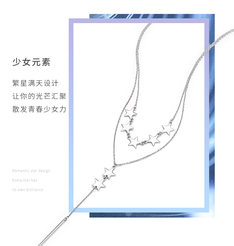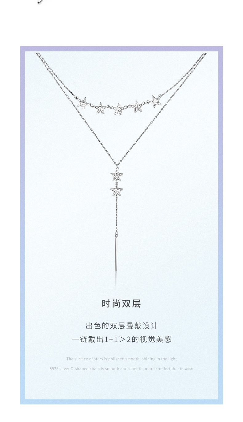 这款周大生 双层叠戴星星项链,是一款S925纯银锁骨链,双层叠戴的繁星满天设计,搭配长链吊坠,散发着青春活力少女范。主体是925银材质,对皮肤无刺激。