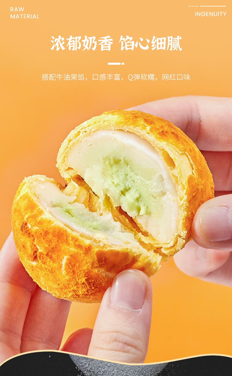 选用优质牛油果绵滑果肉,新鲜生产,酥皮层次分明,一口咬下去,一股浓厚的冰淇淋口感,在舌齿间迸发,皮薄馅厚,香甜绵软,醇香细腻领券链接点此