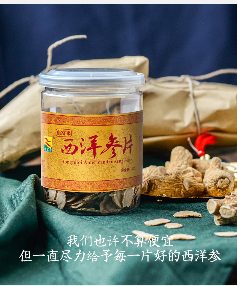 这款西洋参来自康富来集团,康富来集团成立于1972年,是香港著名的健康、房地产企业,西洋参片来自于加拿大安大略西洋参种植协会,只选用5年的黄金参龄,总灰分小于5%,人参皂苷大于2%,是经过国家药典认证的好参。