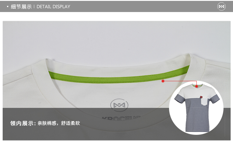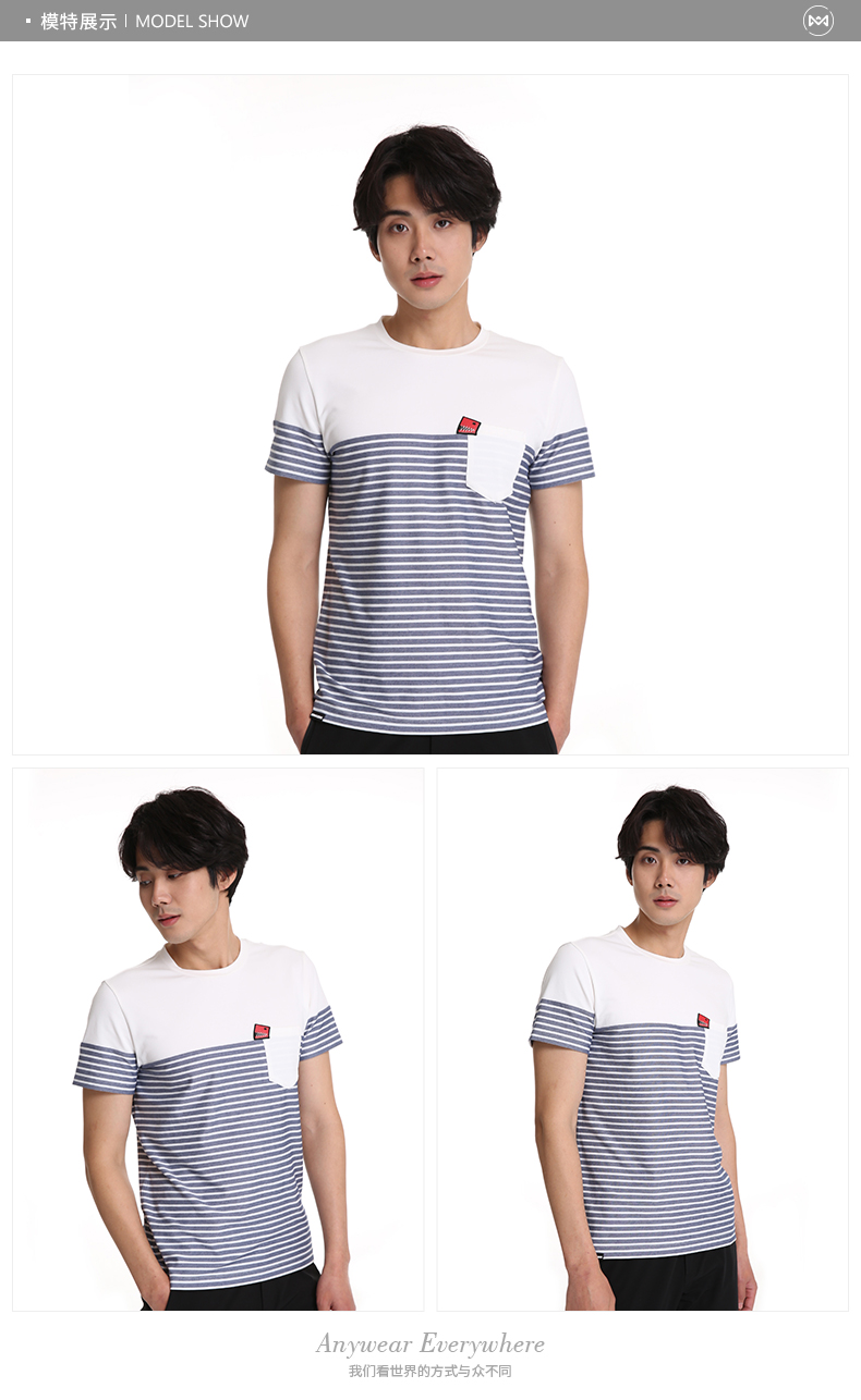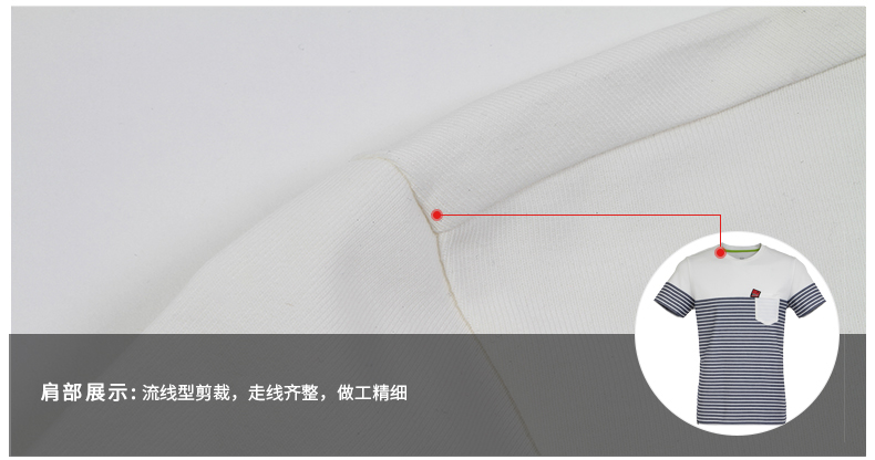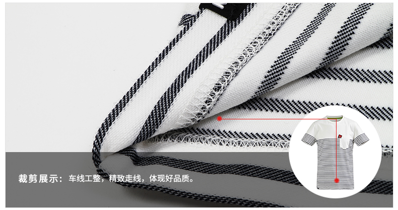 在款式和细节上,合身版型,后脖颈是无感标签,不会刺激到脖子,同时后领还有本布防变形条,耐洗耐穿。衣身是横条纹设计,简约时尚。
