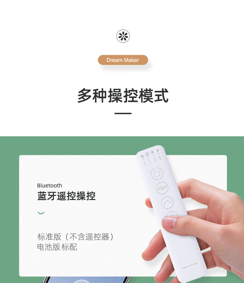 支持小爱同学、天猫精灵、叮咚、小度音箱四大语音控制+APP控制,无声超静音,噪音最低可低至13dB(A),花开声音约为10dB(A)。
