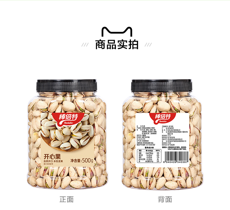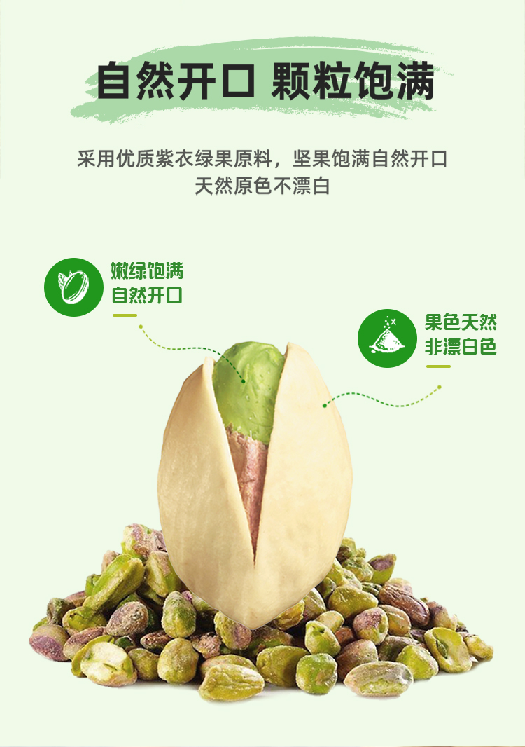 棒倍特 原色无漂白 开心果,原果来自美国加州,果实自然成熟开口,果肉饱满、大小均匀、经典原味,酥脆微软,没有经过漂白,可健康食用。