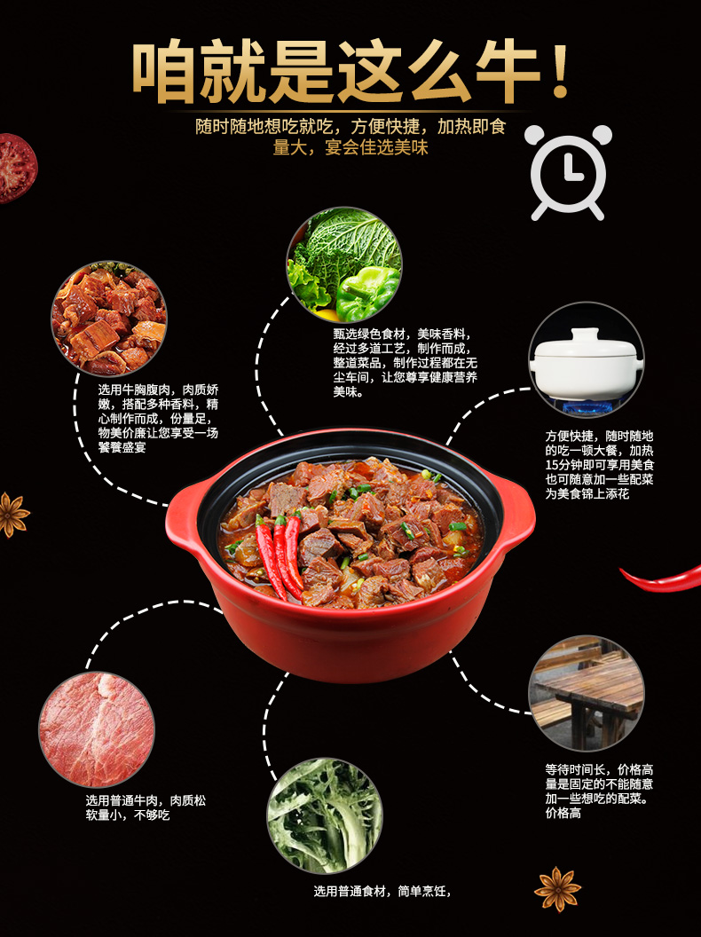 这款谷言 酱香牛肉煲牛腩私房菜,规格:410g,甄选阳光牧场健康肉牛谷饲喂养,并经过严格的检验检测,可放心食用;每份牛肉含量足足300g,肉质柔嫩,口感多汁,营养价值高;食用方便快捷,将牛肉包调味包放入盛水的锅中,加入土豆或者冬瓜等,小火慢炖15分钟即可。