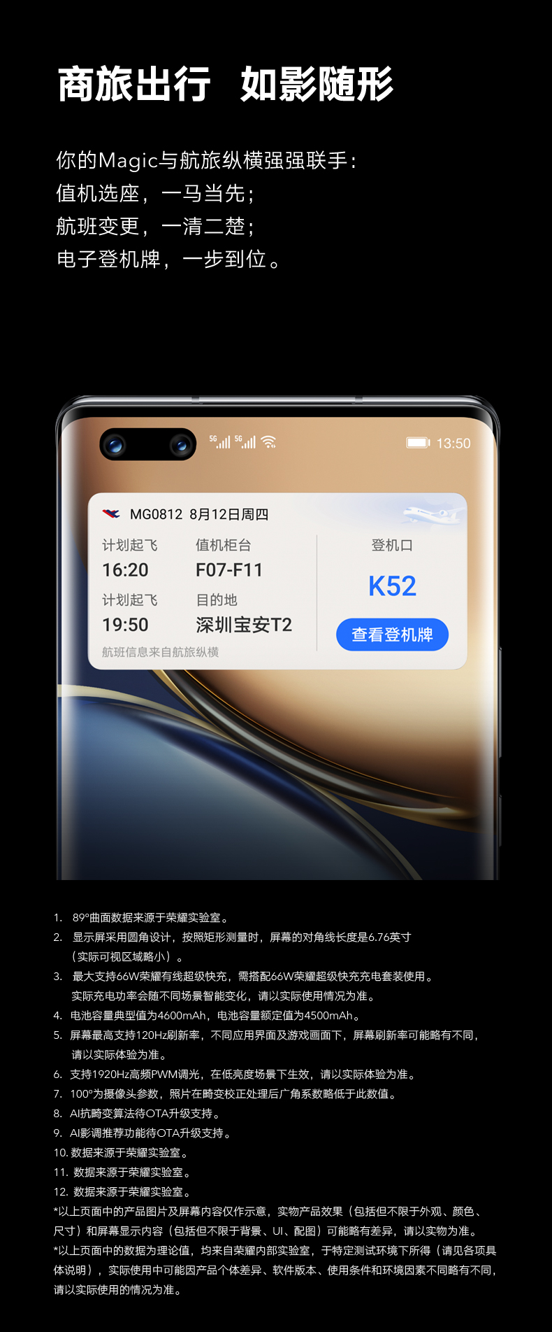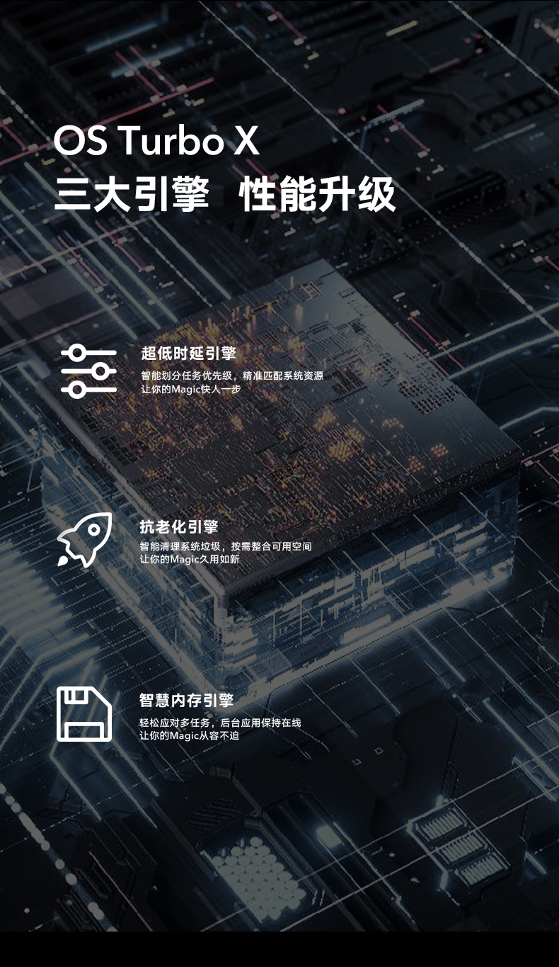 MagicUI 5.0,带来全新的全局智能动态显示与手机铃声,提供纯净的文件管理。双TEE隔离环境,生态和安全兼顾,并提供APP权限最小化推荐,保障用户隐私。全新进化的YOYO建议,提供个人事务中心、行程安排、一键接入会议等,提供更出色的商旅体验。此外,荣耀 Magic3系列还支持数字人民币。