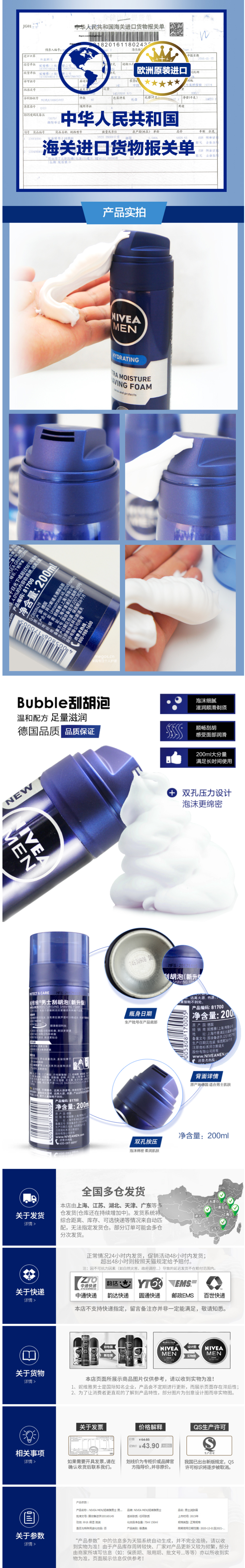 天猫官方店出品,质量没问题,价格上也更划算。剃须前用剃须泡沫软化胡须,并提供保护膜,让剃须更顺滑净爽。
