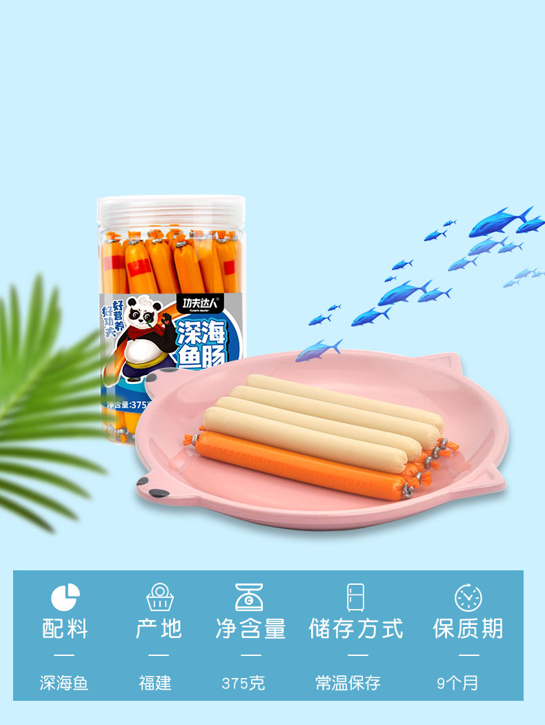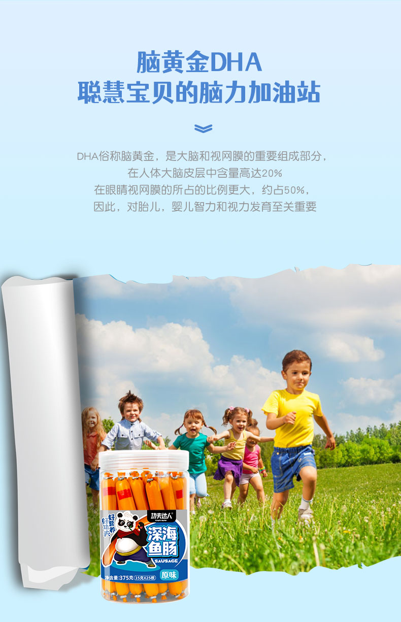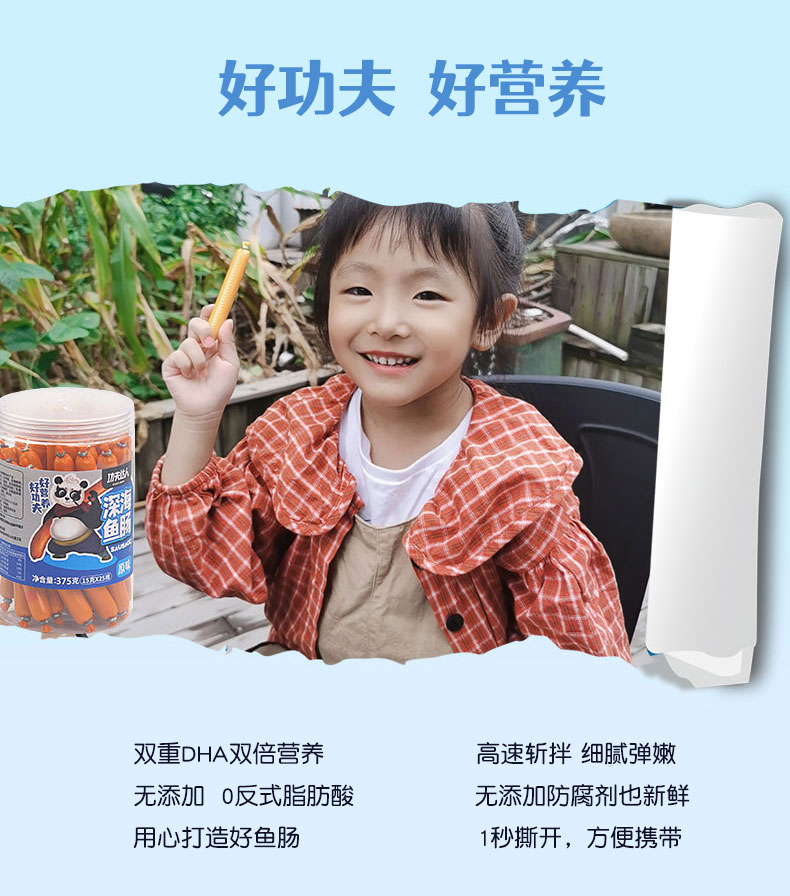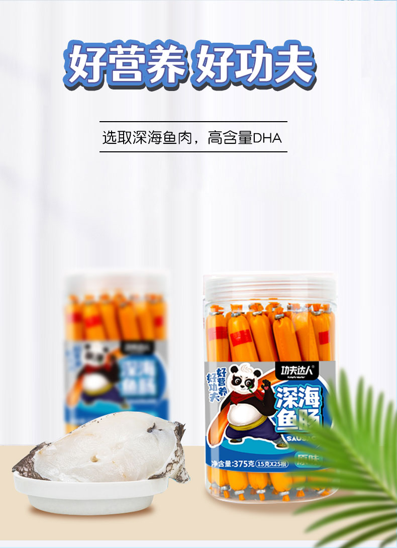 功夫达人品牌,优选深海鳕鱼肉,有效补充DHA和EPA,促进孩子智力发展,可做宝宝零食,无添加剂,安全健康,符合婴幼儿儿童肉肠标准,妈妈放心选!超市同款均价3元/根!淘金币可抵领券链接点此