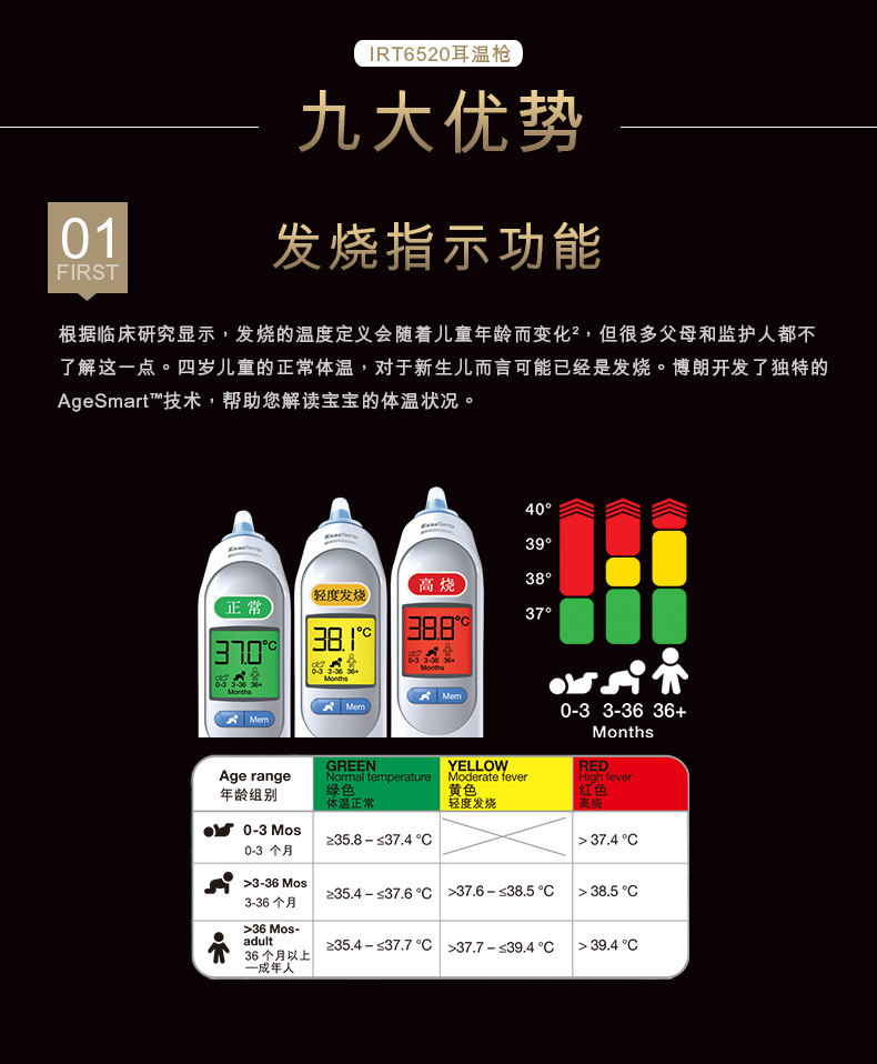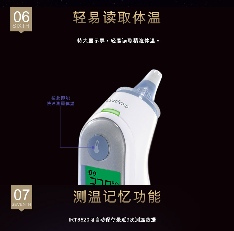 与经常推荐的IRT6500的区别,网友“绿草莓”推荐到:“1、新增发烧预警,不同年龄的宝宝发送的界定不同,这个有红黄绿提示正常、低烧、高烧;2、新增LED夜光显示功能,家中万一宝宝或者老人发烧,晚上测量体温也不用开灯,免得影响他们睡眠;3、新增9次体温记忆功能,有记忆数据可以记录体温,有好转变得立刻得知~很方便”
