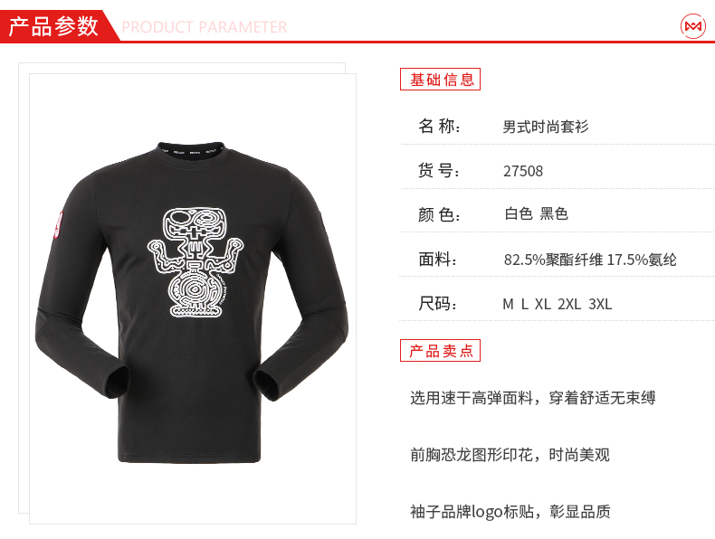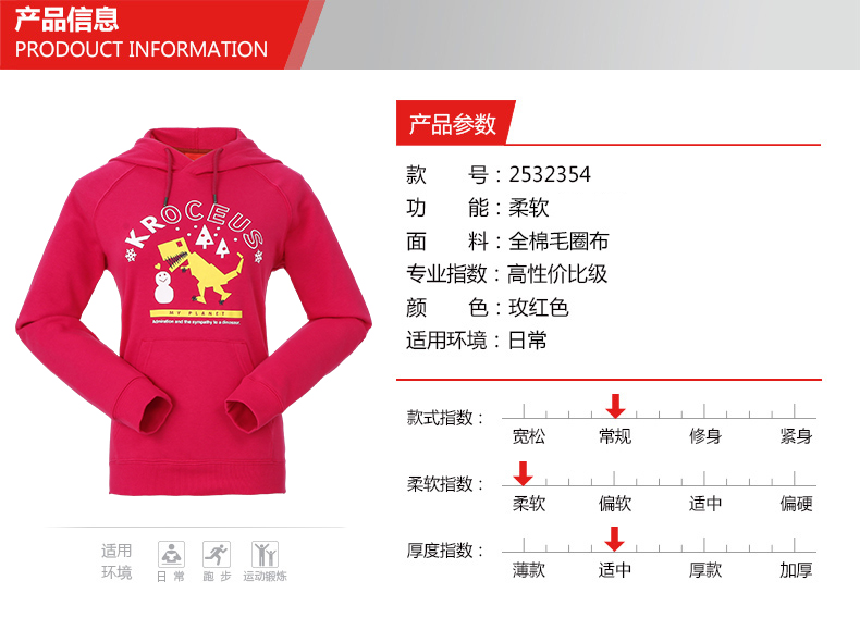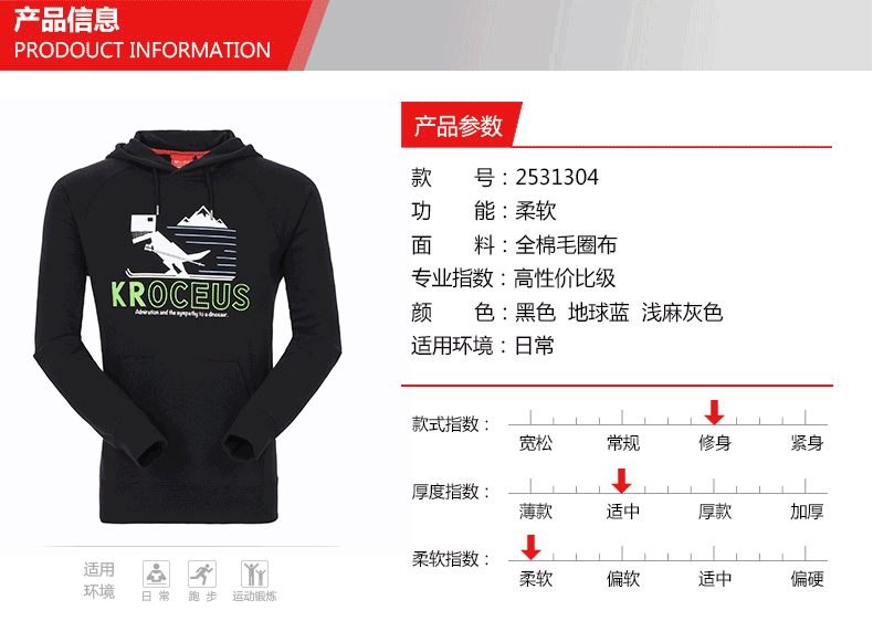 这件地球科学家男连帽休闲卫衣,一体连帽套头衫款式,帽子出还有抽绳,便于调节。采用全棉毛圈布制成,保暖舒适,袖口和下摆都有螺纹,防止冷风倒灌,胸前是恐龙主题的印花。