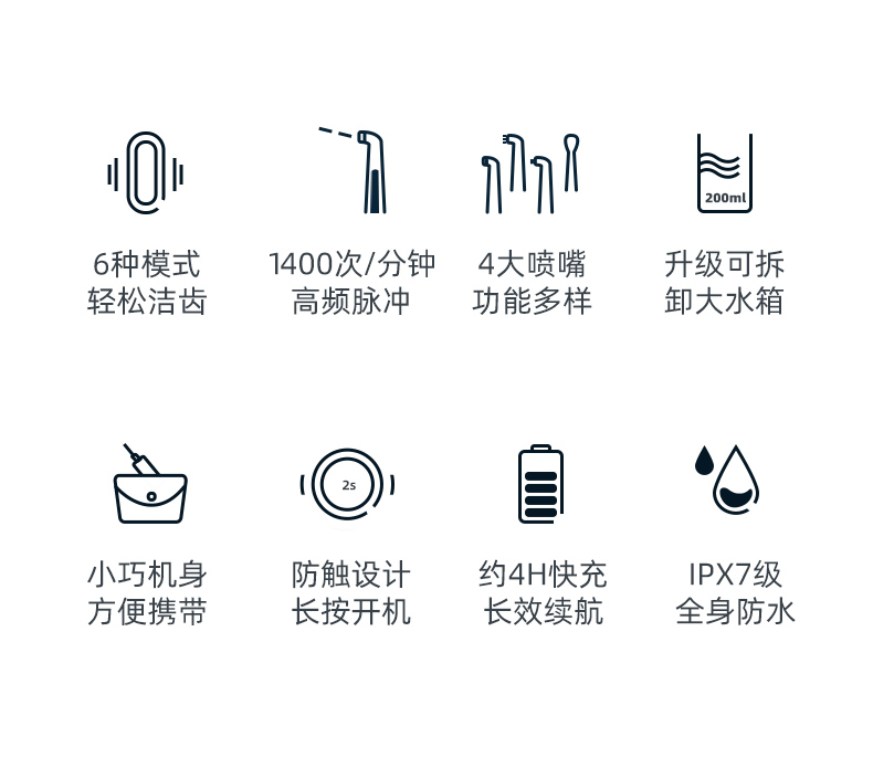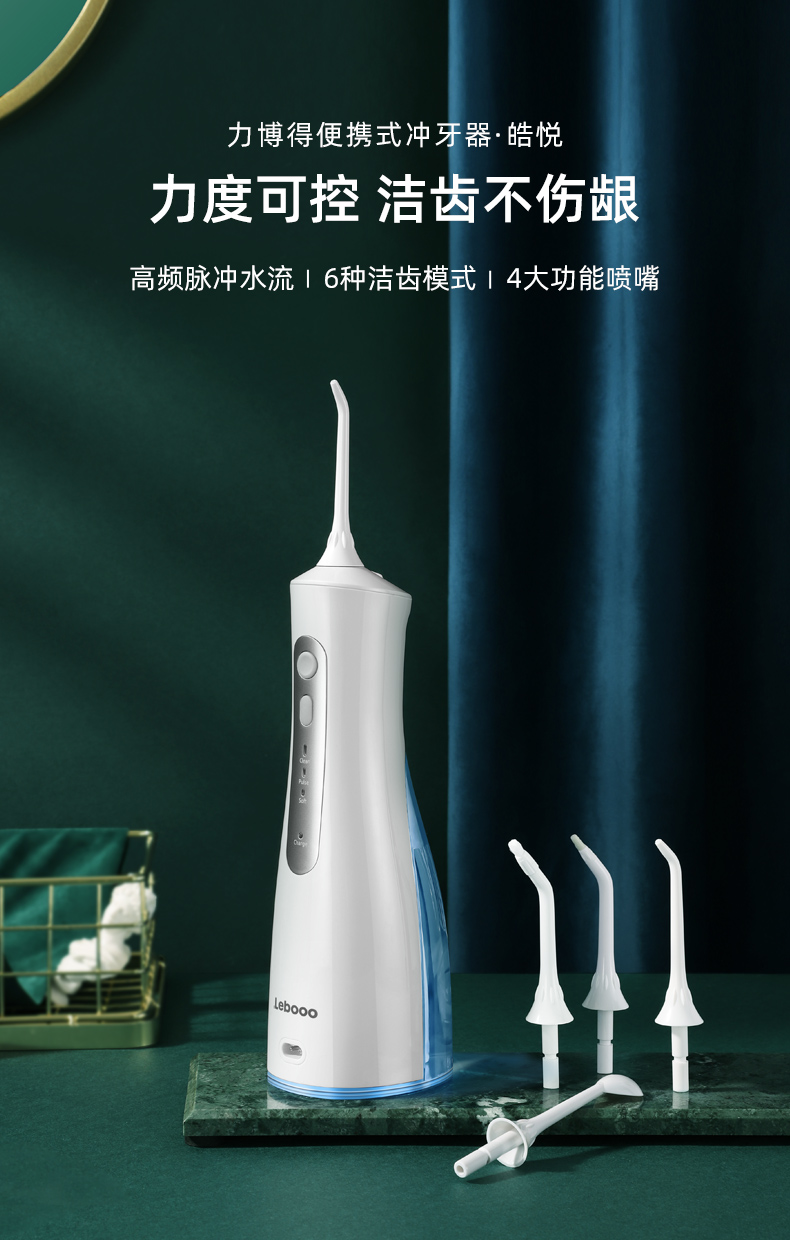 这款 LEBOND 力博得便携式冲牙器,4.9高分好评,专业牙医推荐,1400次/分钟高压脉冲水流,有效清洁牙结石,清洁、脉冲、轻柔3种模式,2挡力度可调,4小时充电可续航2周,带充电指示灯,安全便携,200ml大水箱可拆卸,方便卫生,IPX7级防水,可直接冲洗。