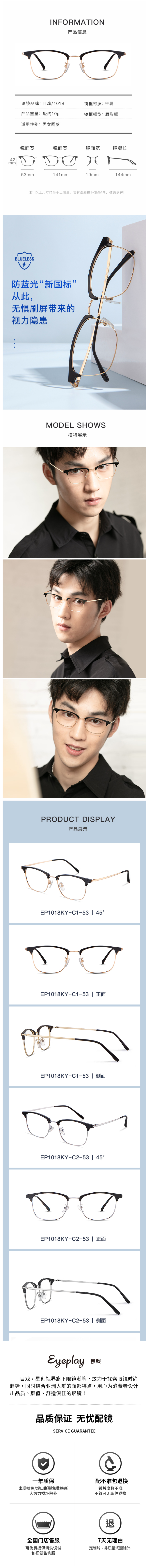 大牌宝岛眼镜出品,去宝岛的线下实体配一副眼镜至少大几百元,简约的镜框设计,镜架仅重约10g,减轻鼻梁的负担,佩戴更加舒适,表层无尘水电镀工艺,不易褪色,镜架色彩持久,后部TR90脚套,不易过敏,佩戴省心。