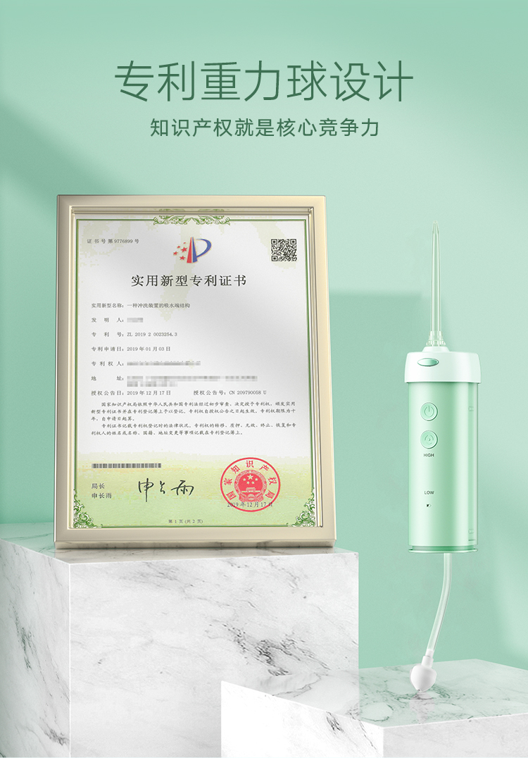 1400次/min高频脉冲,0.6mm细腻水珠,聚焦水流全方位清洁死角死缝,有5种清洁模式,在搭配4种喷嘴,适合不同人群打造专属你的清洁方案。