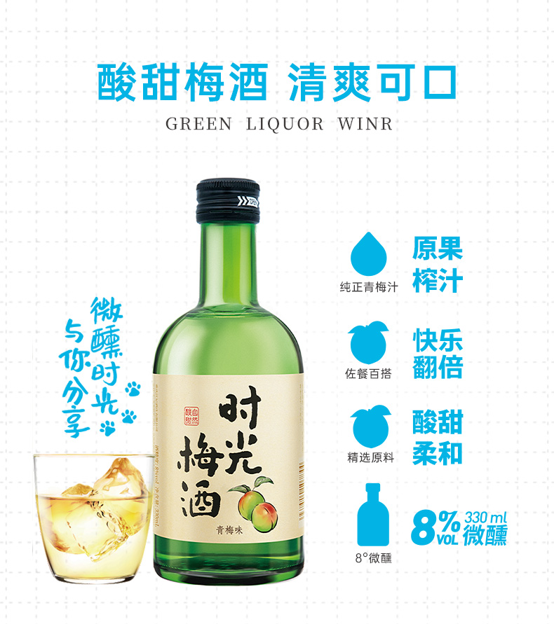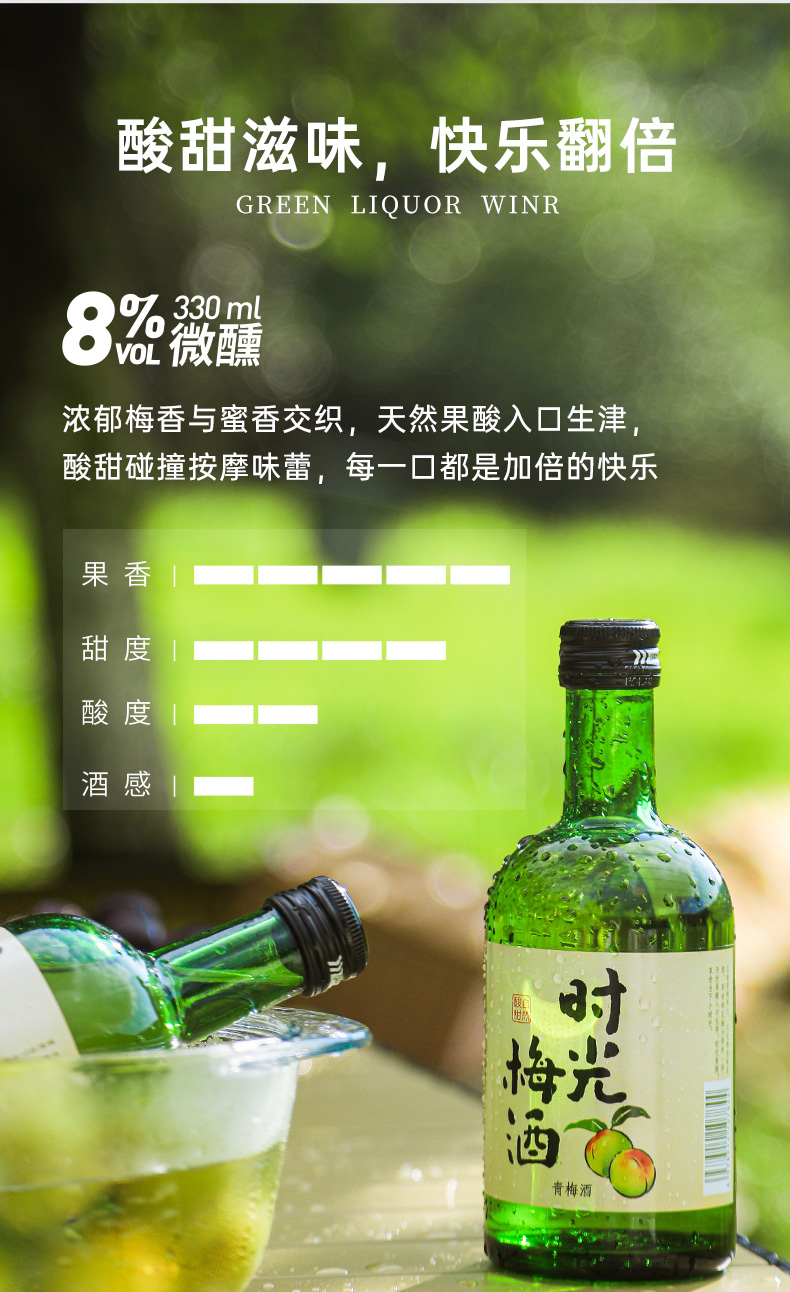 天猫东方清饮旗舰店50元,可领18元优惠券,实付32元到手,规格为330ml*2瓶。这款时光梅酒,酒体呈浅黄色,梅香扑鼻酸甜交织,略带焦糖的甜香。刺激味蕾,令人愉悦,8度微醺,常温饮用与冰镇皆宜,清爽的青梅酒更适合中国人口感,搭配中西餐都很配。
