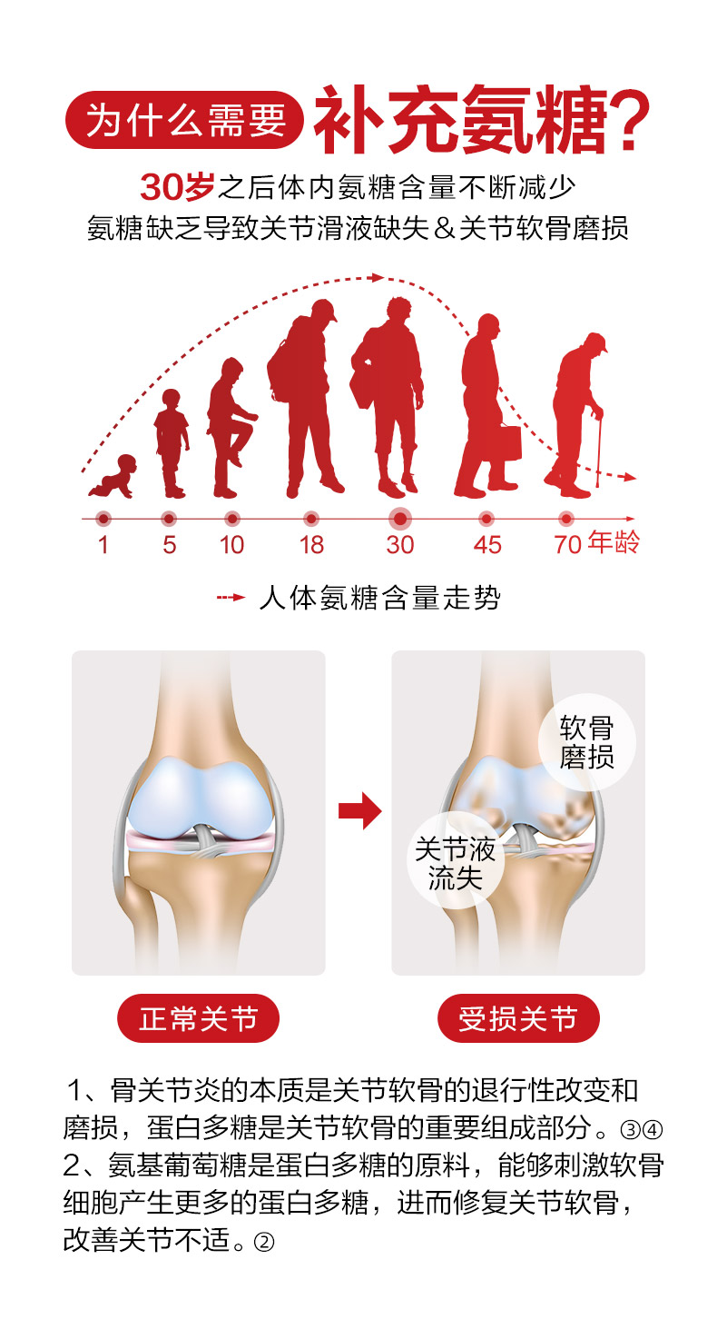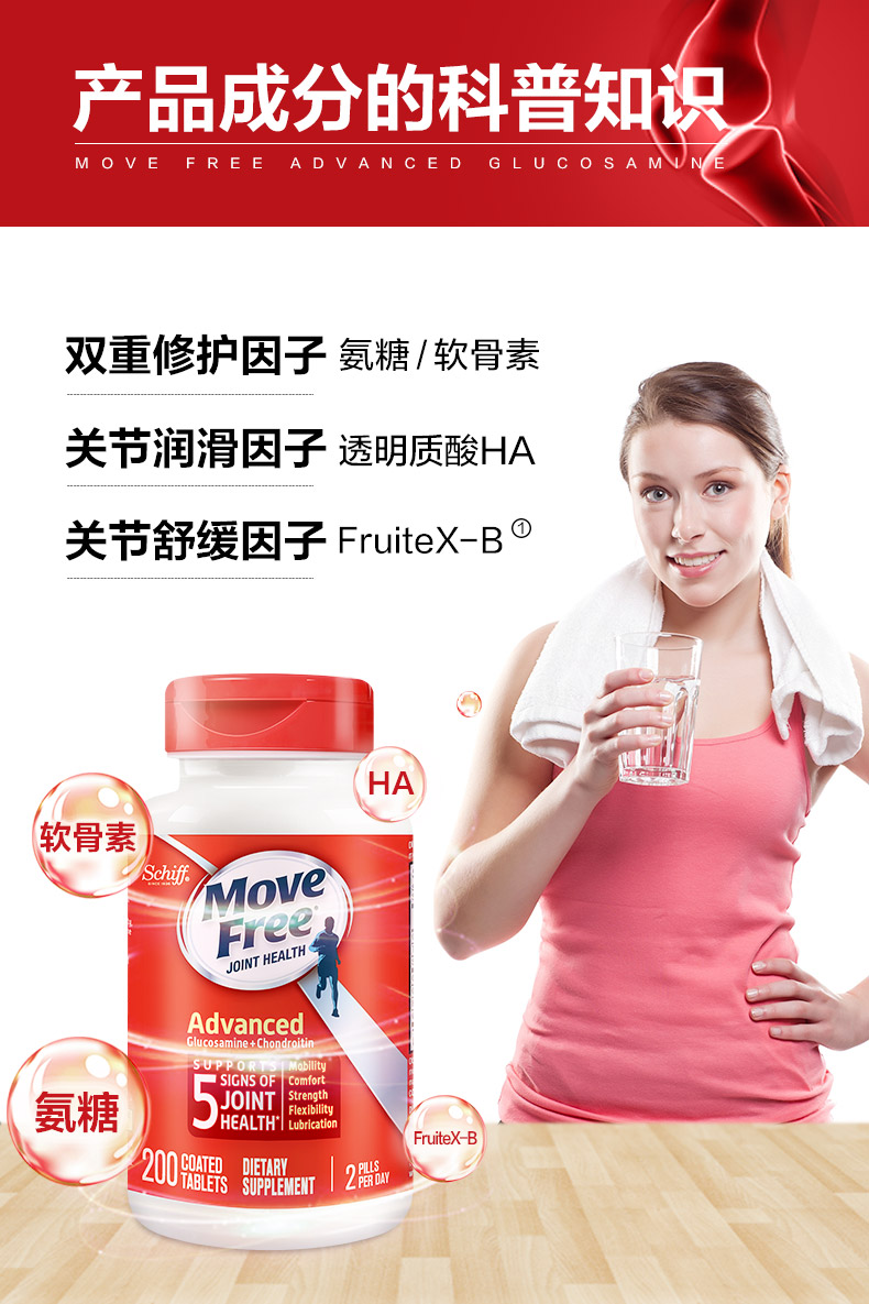 Move Free维骨力,是美国关节保健品市场上的第二大品牌,母品牌Schiff有近80年历史。Move Free最大的特点,是针对骨关节保健盲区“软骨”进行营养补充,核心营养素是“氨基葡萄糖”,也叫氨糖,美国有专门的医疗机构论证过氨糖的有效性。