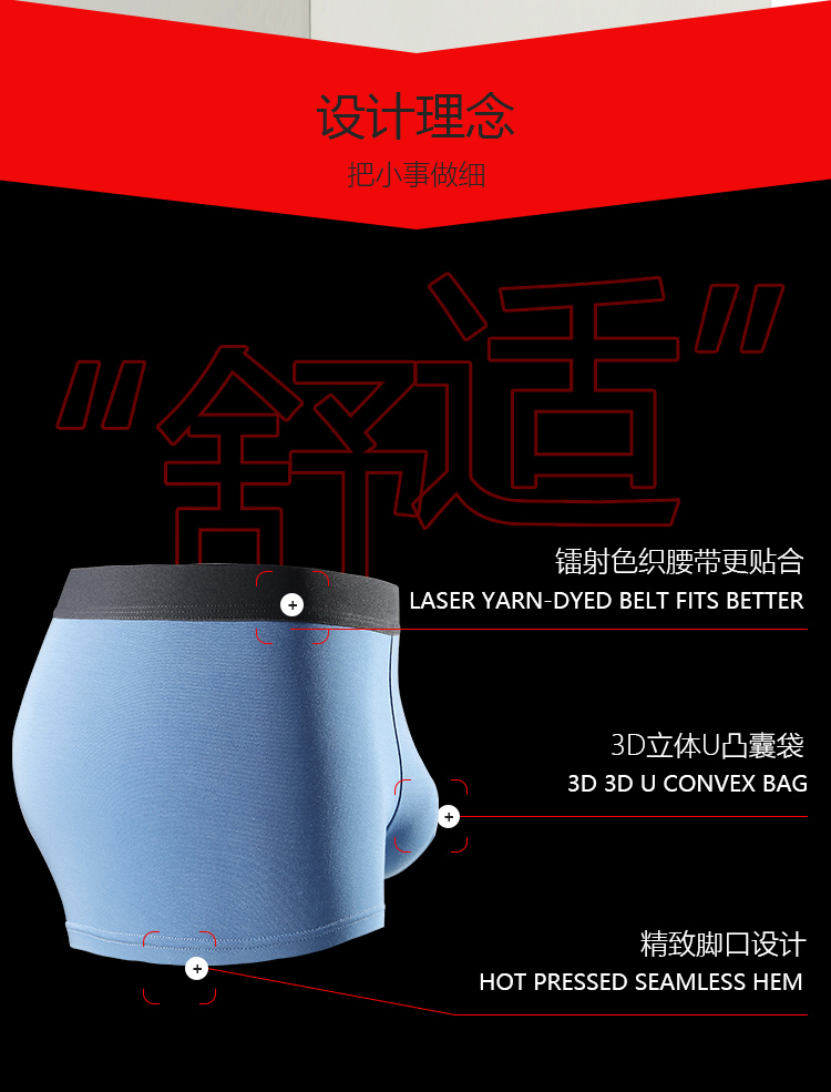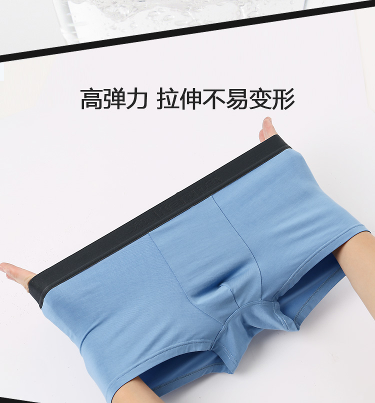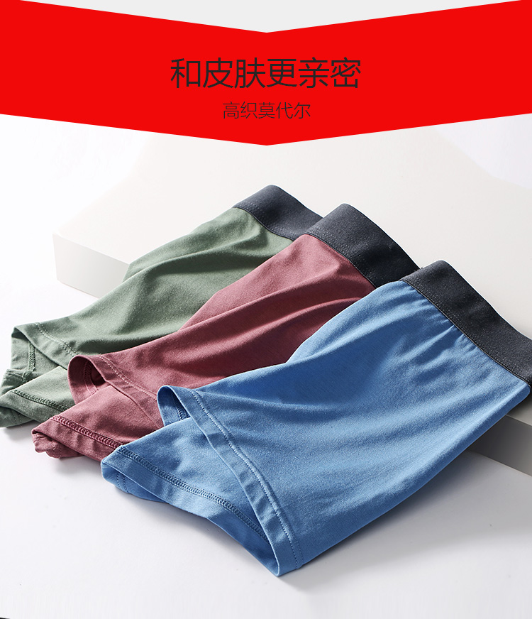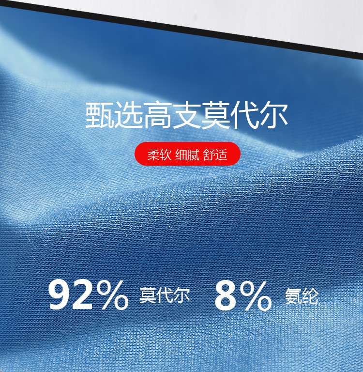 和纯棉面料相比,莫代尔手感更柔,吸湿更快更干爽,连续穿几天也没有棉质内裤松懈。莫代尔面料要混入氨纶弹力纤维,拥有弹力贴身的穿着感,又不会像尼龙或聚酯纤维有明显的紧绷感。