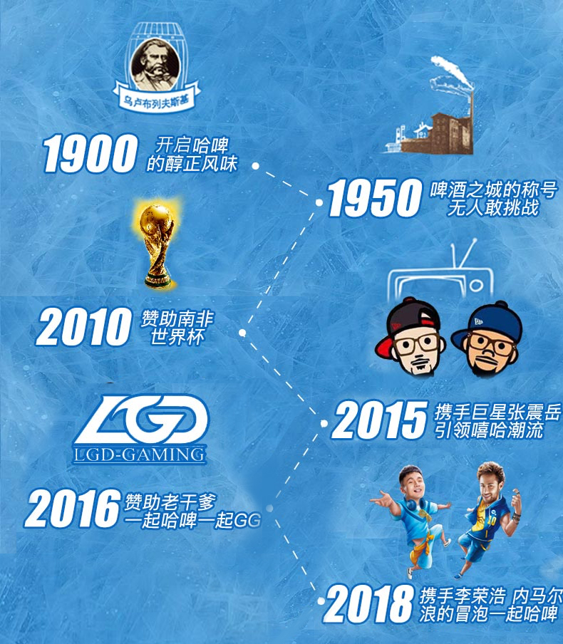 哈尔滨啤酒,诞生于1900年,由俄罗斯商人乌卢布列夫斯基创建。现在隶属百威英博啤酒集团旗下,是国内较早的啤酒品牌,拥有冰纯、小麦王、冰爽等系列产品。