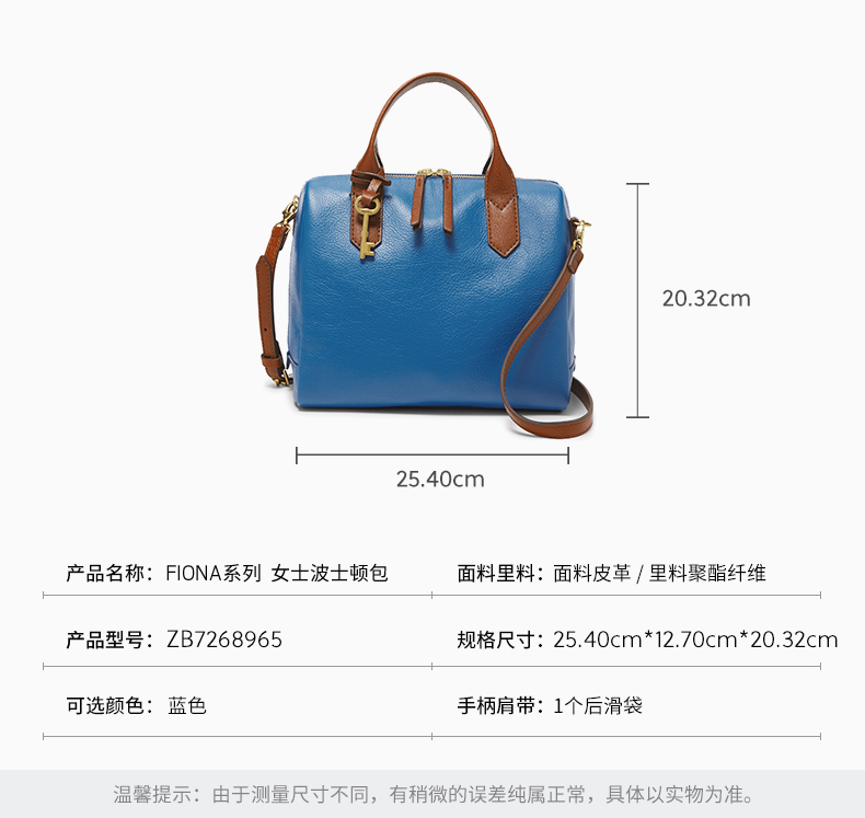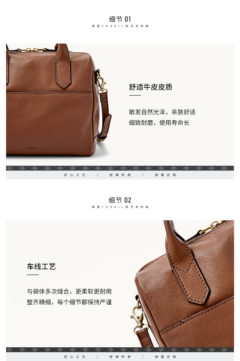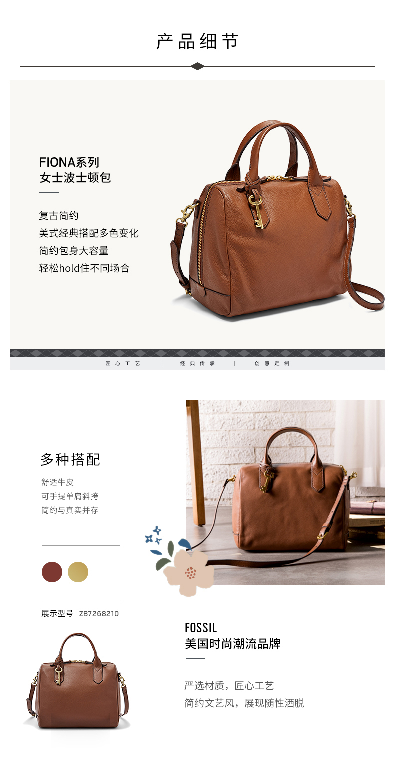 这款化石Fossil女士真皮波士顿包,属于FIONA系列,可手提也可单肩或斜跨,包身使用纯牛皮制成,纹理清晰,摸起来的手感很细腻。复古简约设计,特点就是包内空间大,尺寸是25.4*12.7*20.32cm。