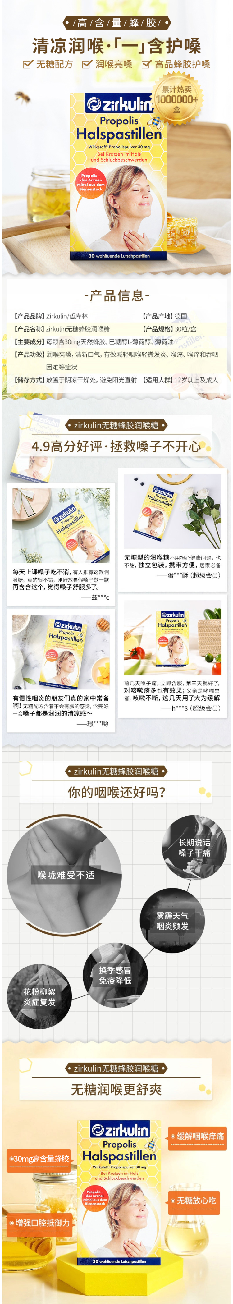 这款 Zirkulin 润喉糖含有丰富的蜂胶成分,可有效增强口腔抵抗细菌病毒的能力,愈合口腔黏膜,缓解咽喉不适的同时,贴在口腔溃疡处还能治愈空腔溃疡。