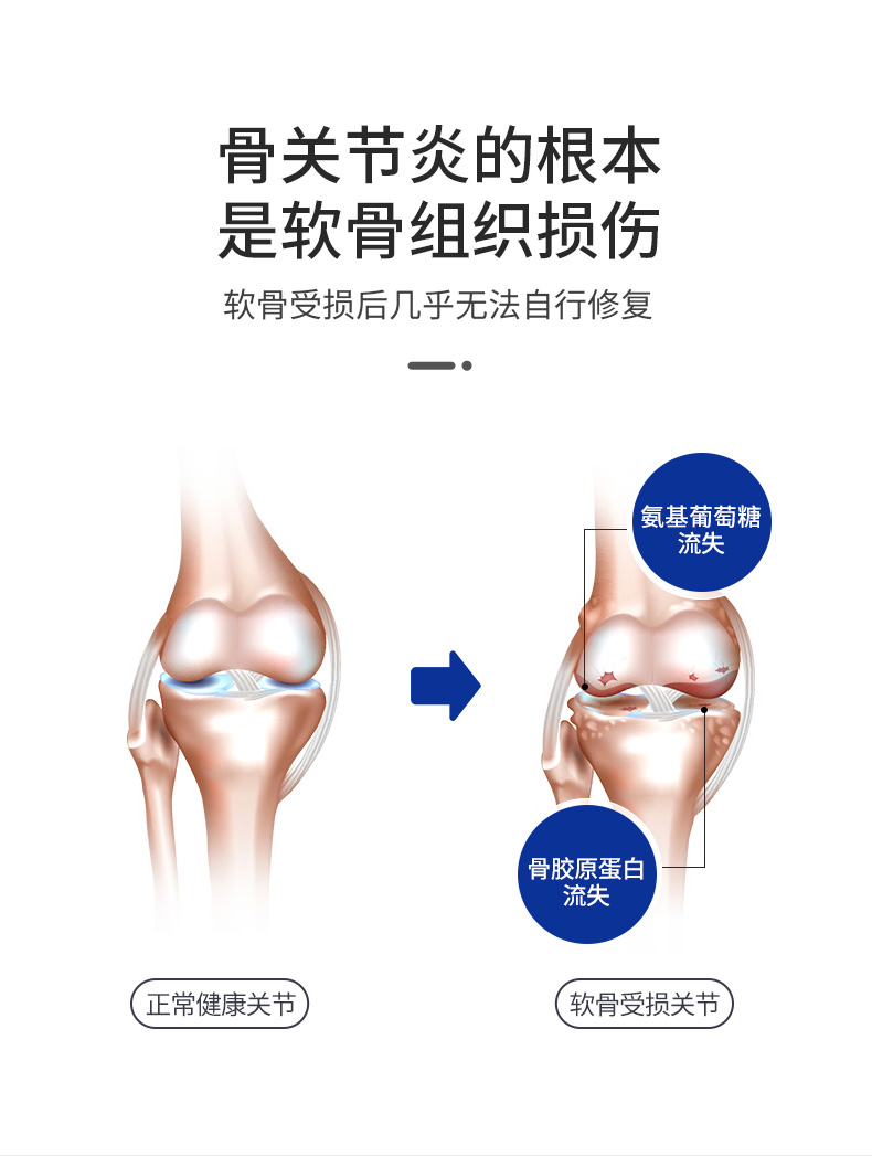 30岁以后氨糖在人体内含量不断降低且不再生成,因此需要补充软骨营养素,关节才会更灵活。5大关键营养搭配5种微量成分,润滑关节,减少冲击震动,提升营养吸收率。专利混合配方,快速消炎镇痛,有助关节恢复运动机能。