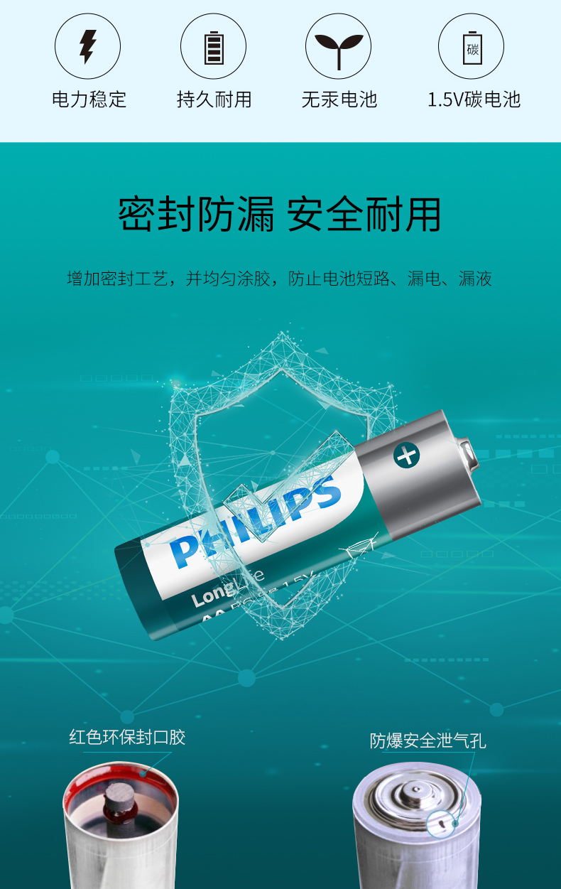 这款飞利浦无汞电池,增加密封工艺制程并均匀涂胶,防止电池短路、漏电、漏液现象。输出稳定,无汞无镉,可丢在干垃圾/其他垃圾中。