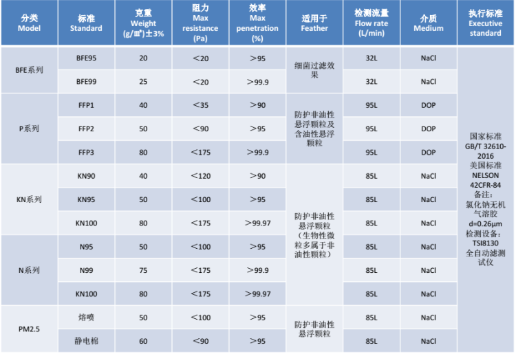 20~25克重:BFE≥95,医用外科口罩标准为BFE≥95%(防细菌)、PFE≥30%(防病毒)