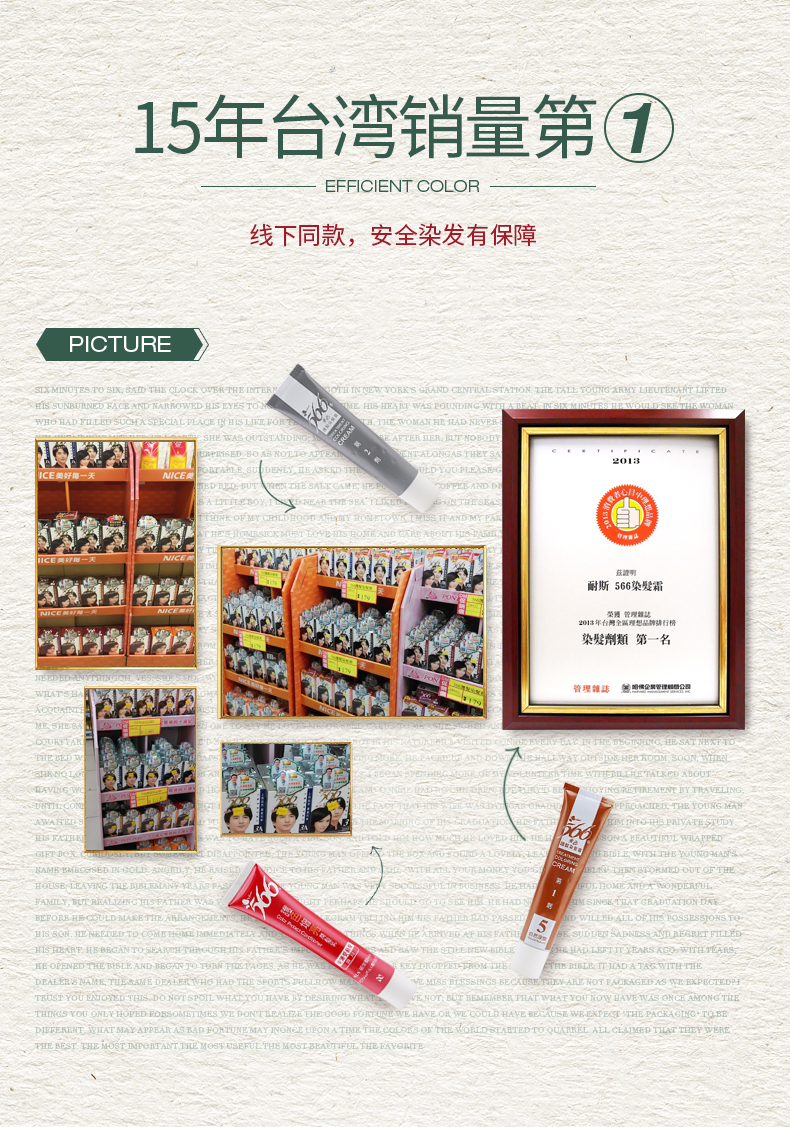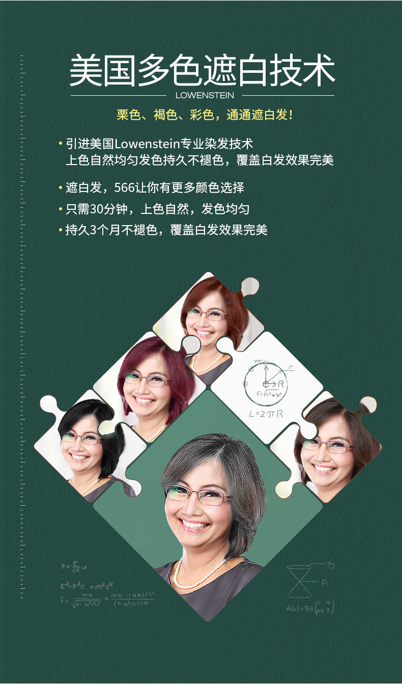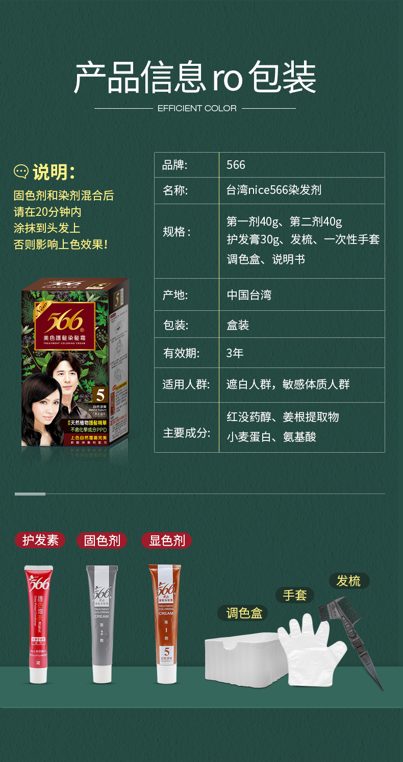 这款566染发剂天然植物提取,采用美国Lowenstein专业染发技术,含小麦、黄菊花和姜根提取物,富含护发氨基酸,能够润泽修护,保护毛鳞片,染后不干涩,柔顺好梳理,欧洲防过敏专利制作,敏感头皮可用,不痒不过敏,持久3个月不褪色,完美覆盖白发效果。