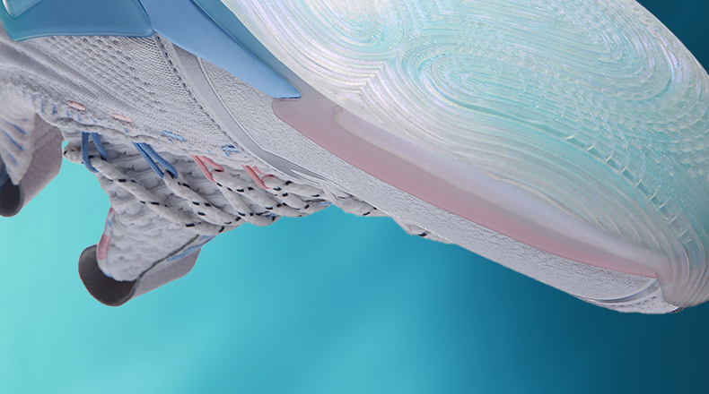 态极的核心就是中底,而中底是使用一种类似于非牛顿流体的物质发泡制成,能做到“遇硬则硬,遇软则软”的效果,在慢走状态下的柔软度微微次于加厚的记忆棉材质,在快速跑动中能获得比Boost颗粒更大的回弹感觉,在发布会上还上演了一幕“铅球变篮球”的好戏。