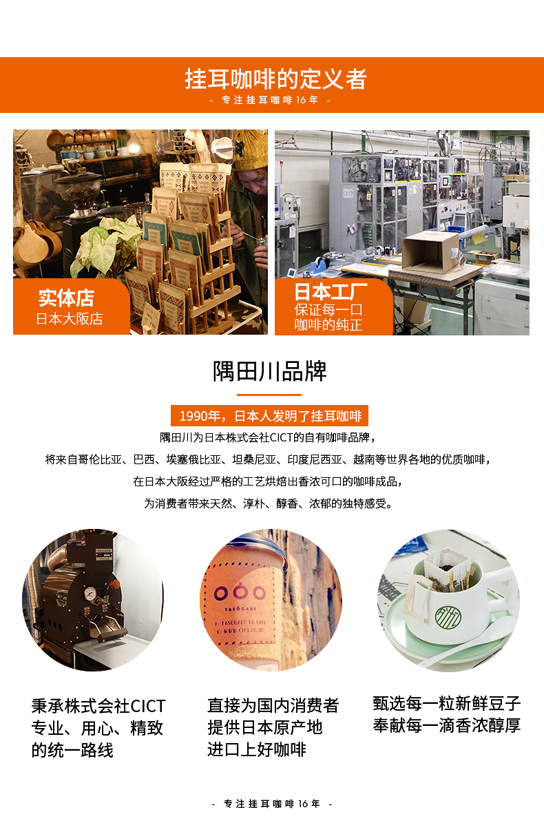 这款隅田川 京鬼系列挂耳咖啡 意式纯黑咖啡,日本原装进口,酸味、苦味,浓厚柔和,口感均衡,60S一杯,媲美现磨咖啡口感。无蔗糖,无树脂末,不含任何添加剂,纯咖啡豆研磨,使用氮气保鲜保香;日本先进无菌滤袋,撕拉方便,注水不疲劳;防挤压加固内盒,加厚环保包装。