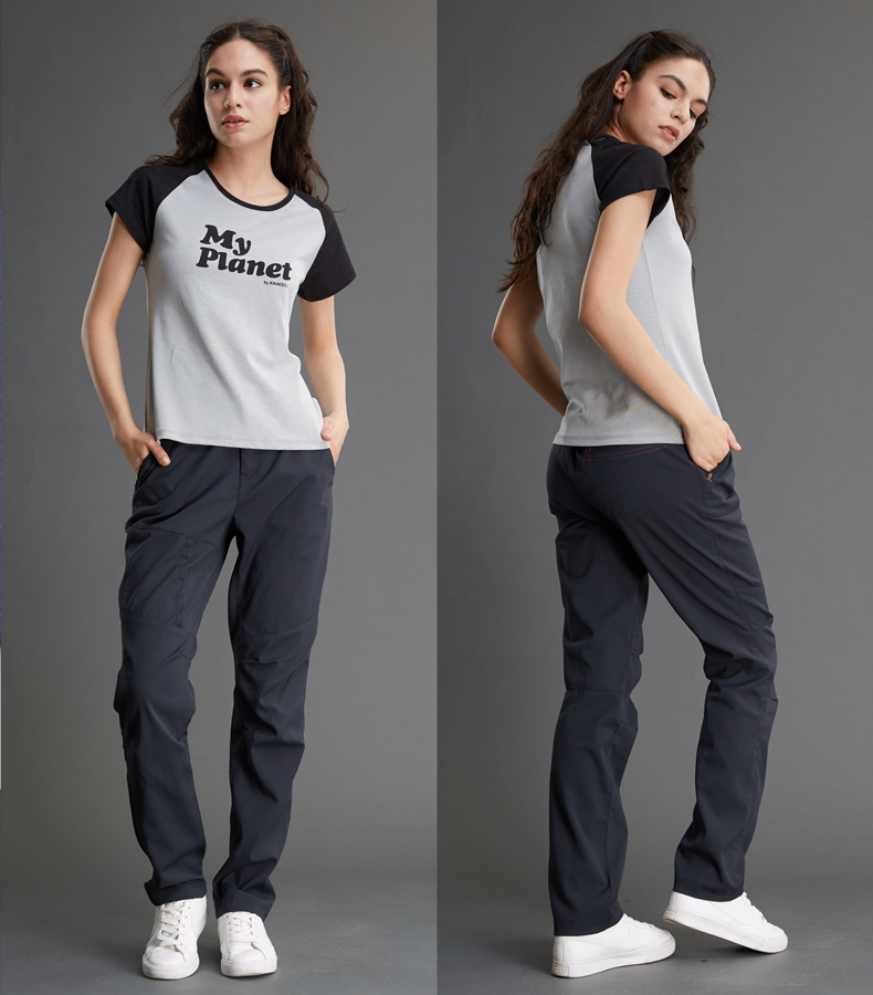 微弹力:面料中含94.3%尼龙,混4.7%氨纶,使面料具有适度的弹力,伸展性好还抗皱,在腿部活动时没有拉扯紧绷感,具有良好的穿着体验。