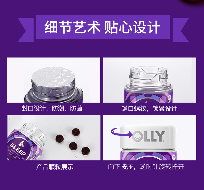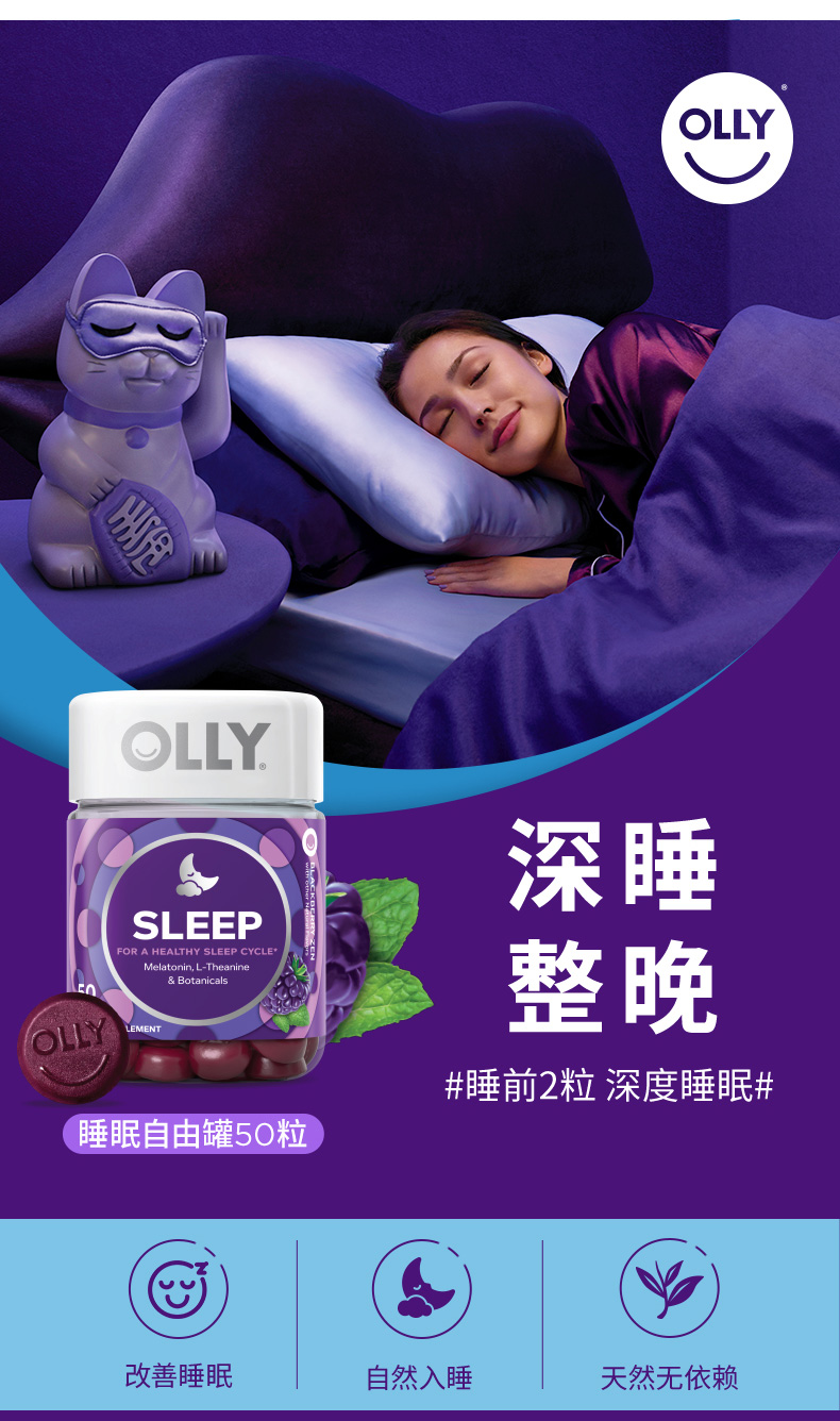 这款OLLY Sleep褪黑素软糖,美国原产,是美国本土睡眠类保健品销量第一,适用于睡眠状况不佳者,有调整生物钟、缩短入睡时间、延长深睡阶段、改善睡眠的功效。