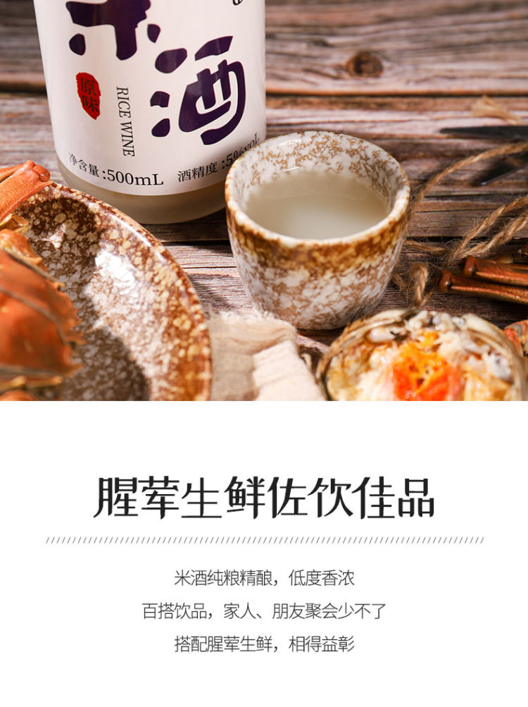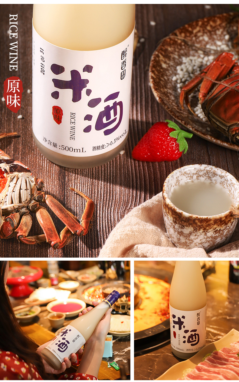 经传统糯米发酵,真材实料,还原米酒原本的味道。口感温润香甜,甘甜醇绵,冷饮、热饮皆可,低度浓郁,微醺三两杯,氛围恰好。