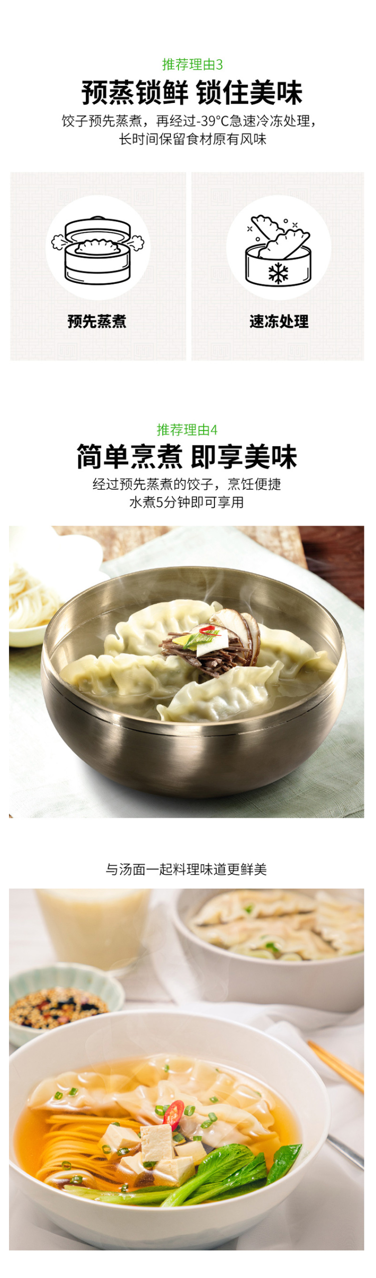 2.是熟冻的,意思是煮半熟后再冻起来的,自己煮的话比较容易熟,还能蒸煎炸都行,吃法多样,不需要专门买蒸饺或者煎饺了。