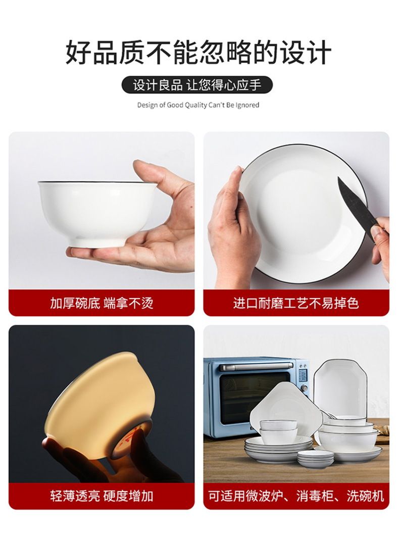 景德镇 骨瓷碗碟套装 10件套套包括:碗 2个,盘 2个,勺子2个,筷子 2双,味碟 2个, 好品质不能忽略的设计,设计良品让您得心应手,进口耐磨工艺不易掉色,加厚碗底端拿不烫,可适用微波炉、消毒柜、洗碗机,轻薄透亮硬度增加,经久耐用,釉下彩工艺,精致描边,描边细腻别致,隔离色彩,易洗耐用,不退缩,坚实耐用,凸显美食,器形丰富、实用美观。